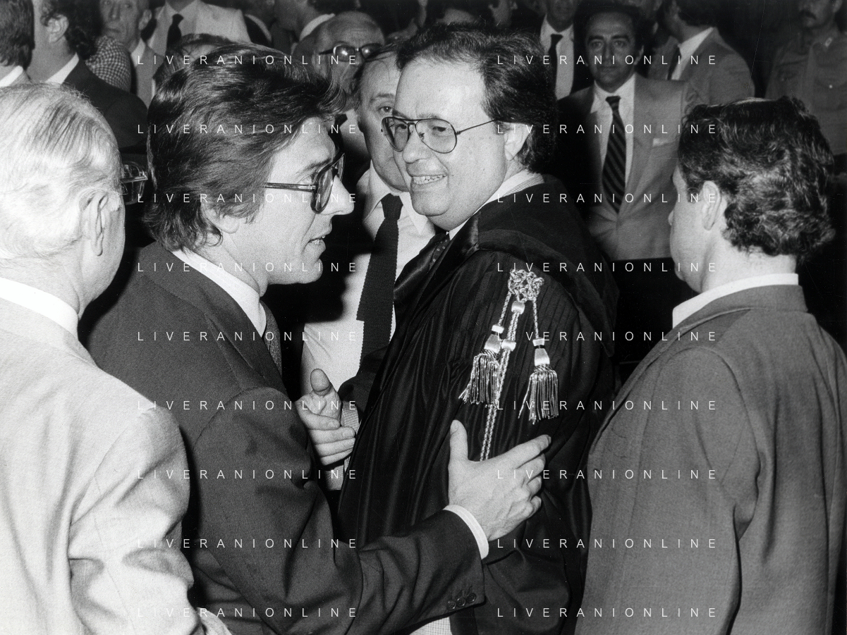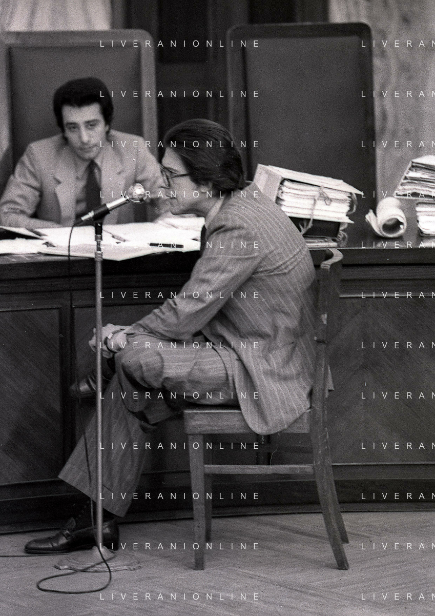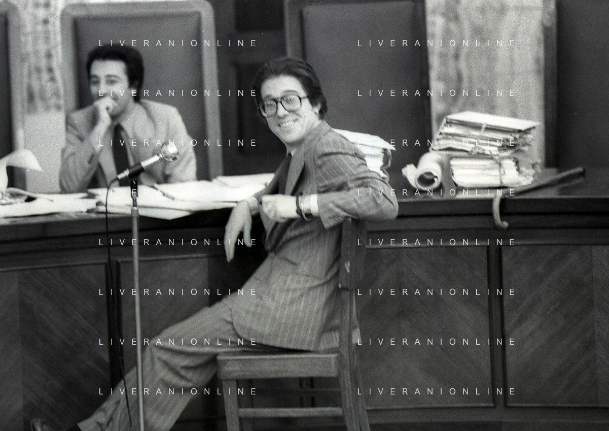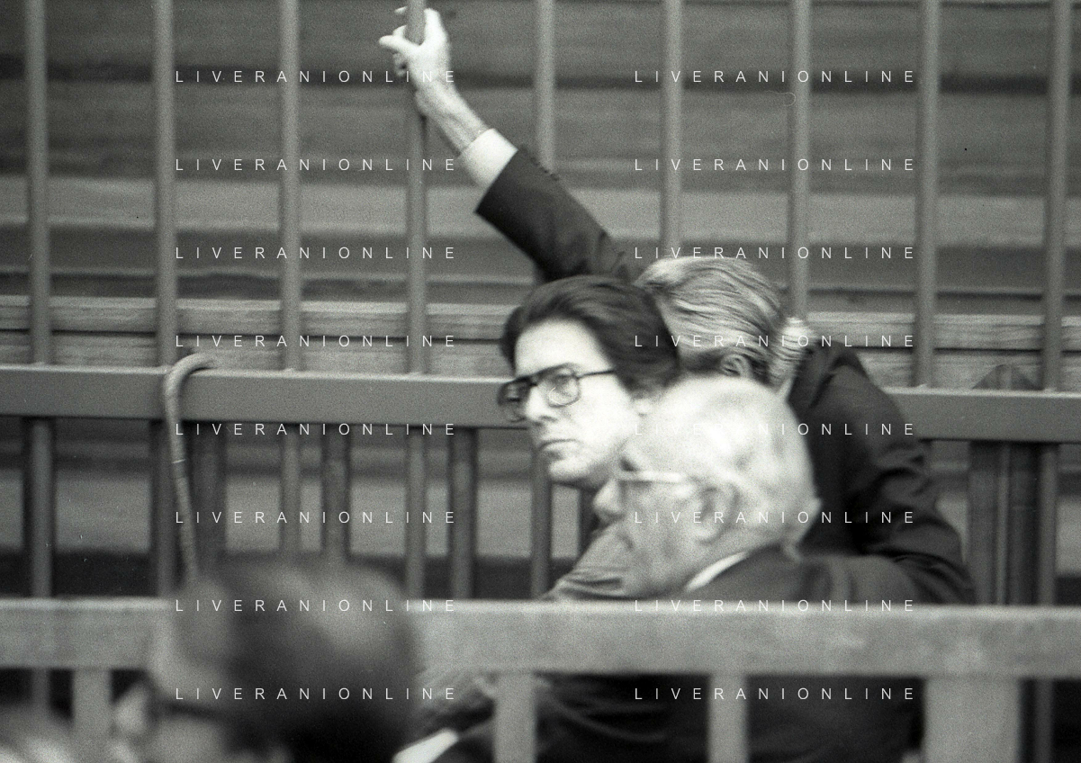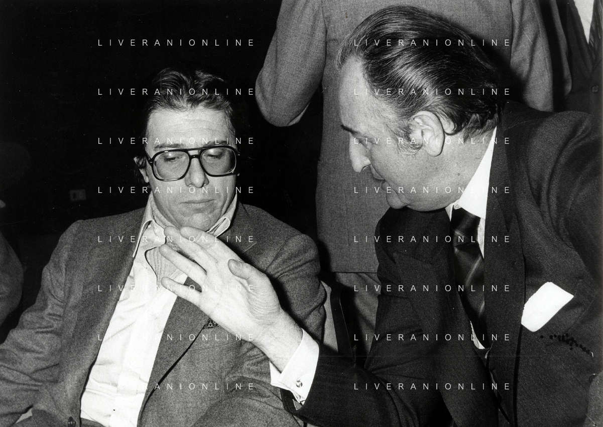 RETROSPETTIVA CARLO BONOMI PRESIDENTE INVEST NELLA FOTO CARLO BONOMI PRESIDENTE INVEST CON MARIO VALERI MANERA NEL PROCESSO DEL BANCO AMBROSIANO DEL PRESIDENTE ROBERTO CALVI DURANTE LE UDIENZE IN TRIBUNALE NELL'ANNO 1981 AG ALDO LIVERANI SAS