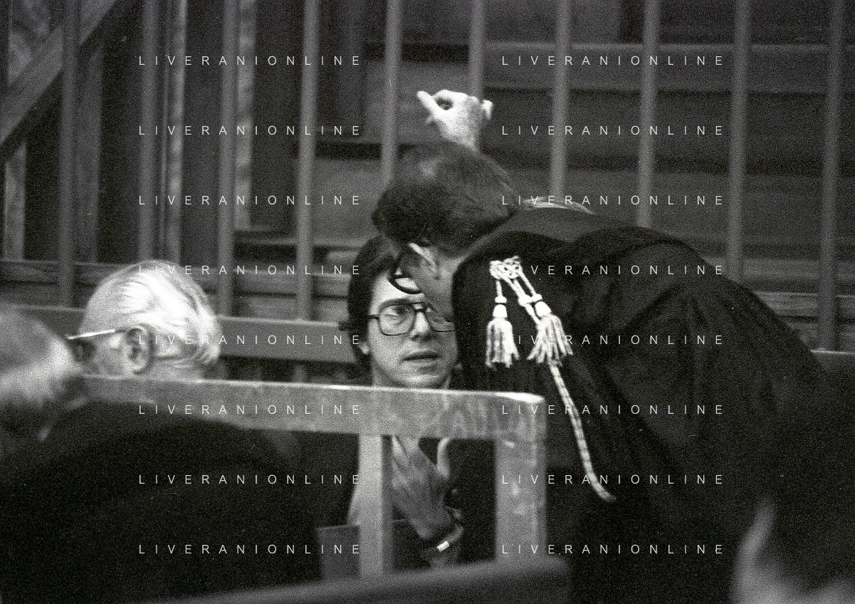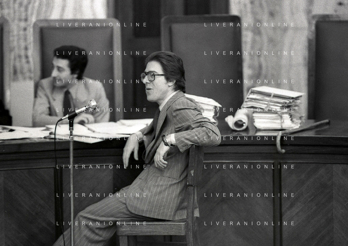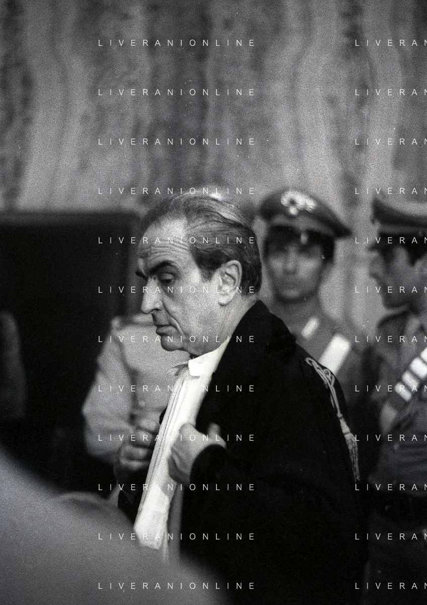 RETROSPETTIVA CARLO BONOMI PRESIDENTE INVEST NELLA FOTO CARLO BONOMI PRESIDENTE INVEST NEL PROCESSO DEL BANCO AMBROSIANO DEL PRESIDENTE ROBERTO CALVI DURANTE LE UDIENZE IN TRIBUNALE NELL'ANNO 1981 AG ALDO LIVERANI SAS