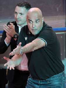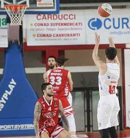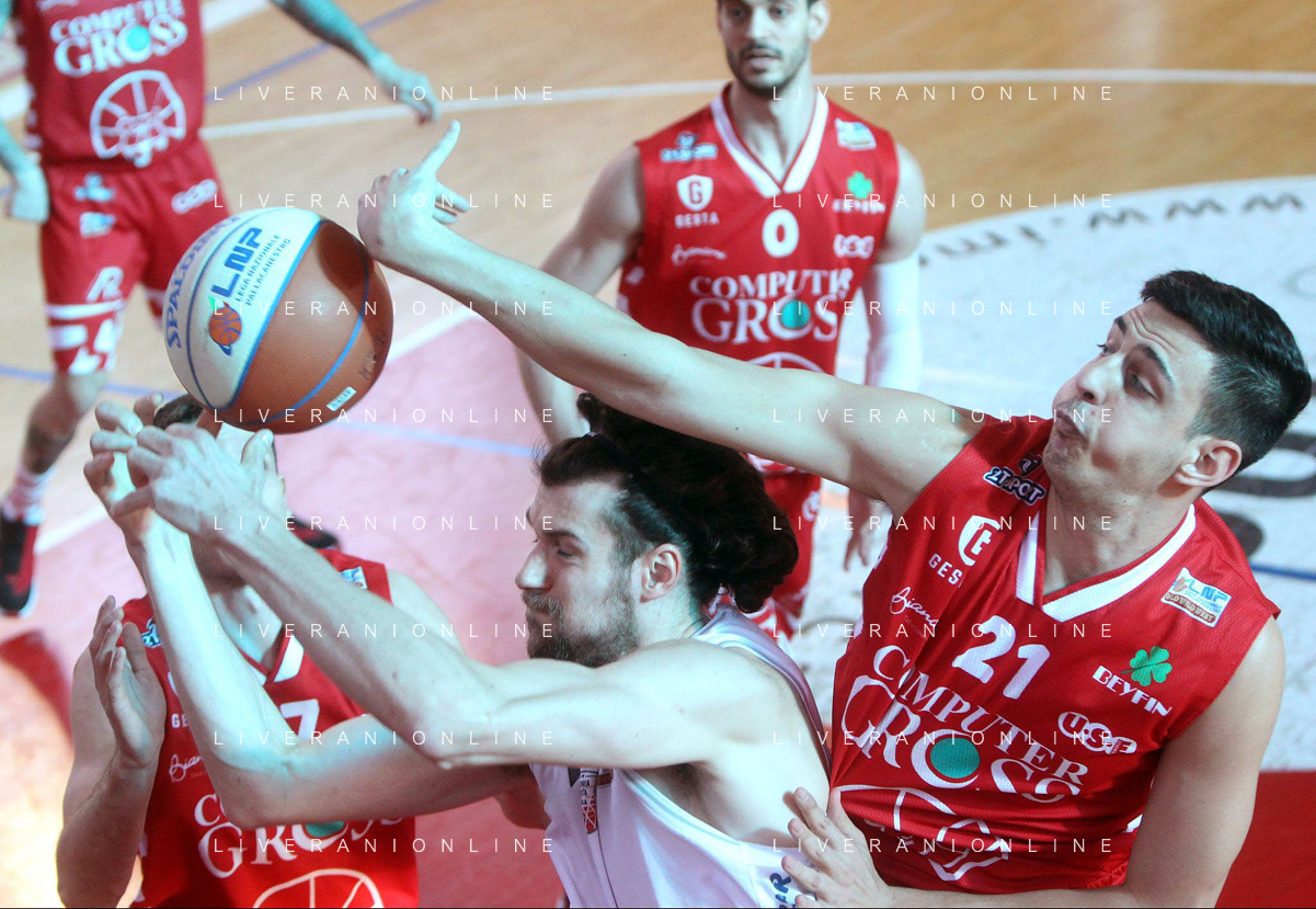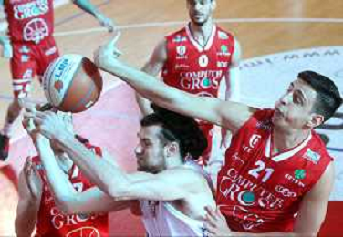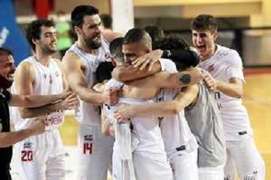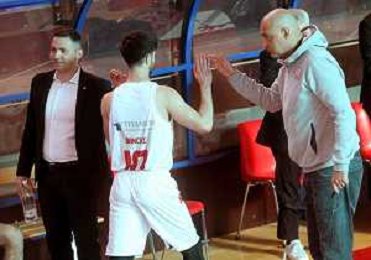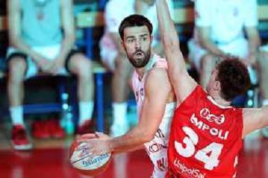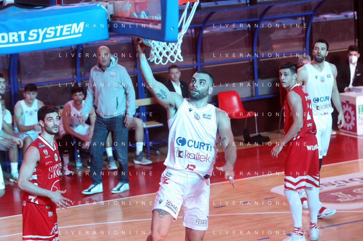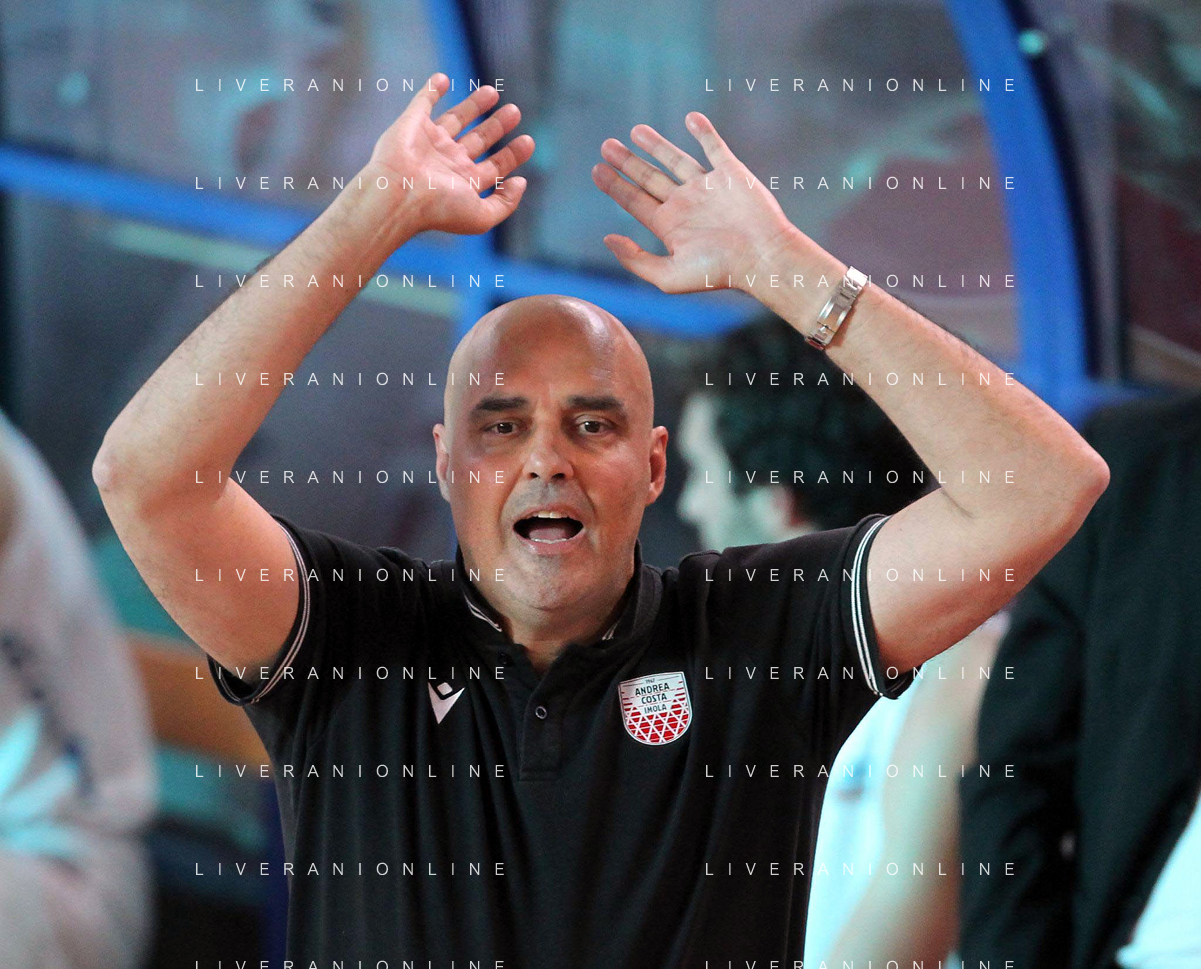 25-04-2021 Alessandro Bianchi esulta con i suoi compagni di squadra dell'Andea Costa Imola dopo il canestro della vittoria foto gianni sanna-ag aldo liverani sas