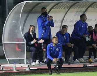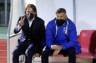 25-04-2021 Lorenzo Spagnoli - Lorenzo Mezzetti allenatore dell'Imolese calcio mentre davanti a loro Francesco Sintini il vice allenatore nella panchina dell'Imolese Calcio FOTO GIANNI SANNA-AG ALDO LIVERANI SAS