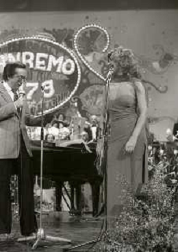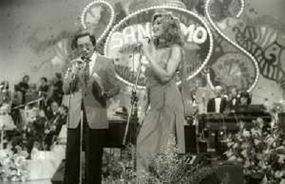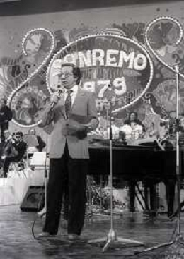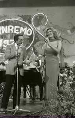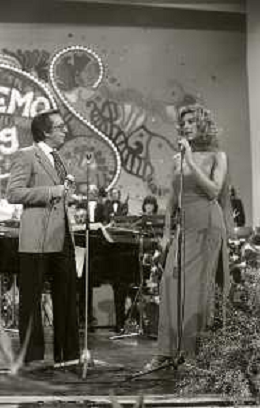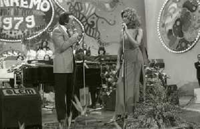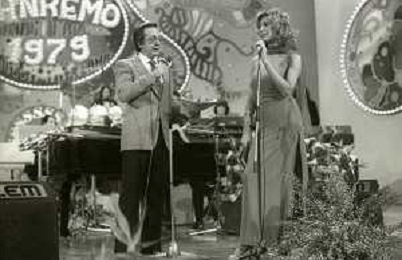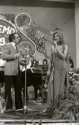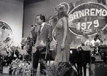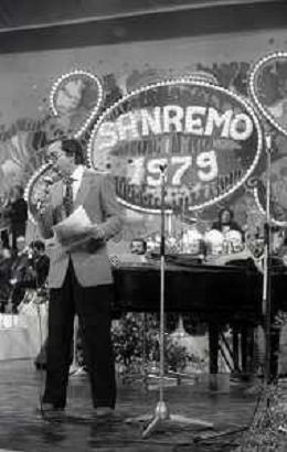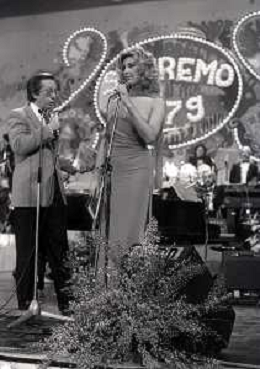 NEG-RETROSPETTIVA MIKE BONGIORNO PRESENTATORE TELEVISIVO NELLA FOTO MIKE BONGIORNO CON ANNA MARIA RIZZOLI NELL'ANNO 1979 AL FESTIVAL DI SANREMO AG ALDO LIVERANI SAS