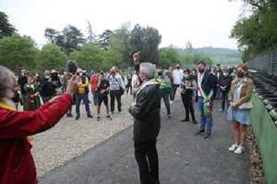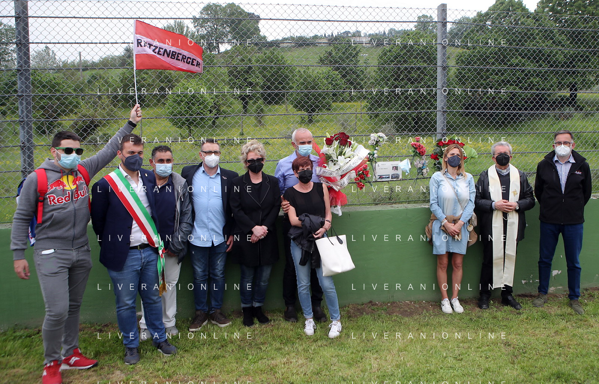 IMOLA 01 05 2021 AUTODROMO ENZO E DINO FERRARI COMMEMORAZIONE A RICORDO DI AYRTON SENNA CHE E' MORTO IL 01 05 1994 E IN RICORDO DI ROLAND RATZENBERGER DECEDUTO IL GIORNO PRIMA ALLA CURVA TOSA NELLA FOTO FOTO LE AUTORITA SINDACO MARCO PANIERI ELENA PENAZZI PIETRO BENVENUTI E DEANA ZACCHERINI NEL PUNTO DOVE E ORTO ROLAND RATZENBERGER FOTO GIANNI SANNA-AG ALDO LIVERANI SAS