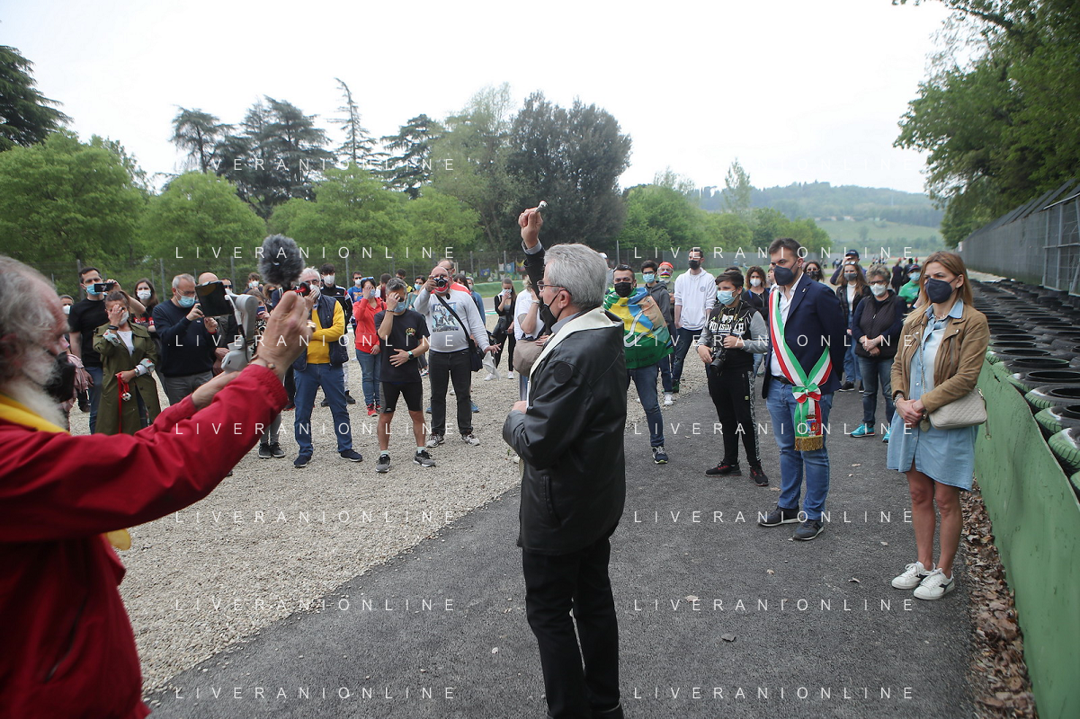 IMOLA 01 05 2021 AUTODROMO ENZO E DINO FERRARI COMMEMORAZIONE A RICORDO DI AYRTON SENNA CHE E' MORTO IL 01 05 1994 E IN RICORDO DI ROLAND RATZENBERGER DECEDUTO IL GIORNO PRIMA ALLA CURVA TOSA NELLA FOTO DIRETTORE DELL'AUTODROMO PIETRO BENVENUTI ALLA CURVA VILLENEUVE FOTO GIANNI SANNA-AG ALDO LIVERANI SAS