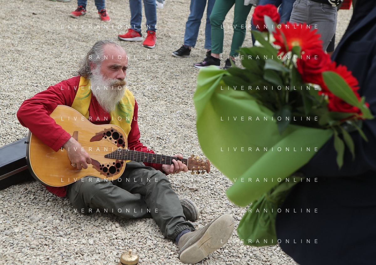 IMOLA 01 05 2021 AUTODROMO ENZO E DINO FERRARI COMMEMORAZIONE A RICORDO DI AYRTON SENNA CHE E' MORTO IL 01 05 1994 E IN RICORDO DI ROLAND RATZENBERGER DECEDUTO IL GIORNO PRIMA ALLA CURVA TOSA NELLA FOTO PAOLO MONTEVECCHI RICORDA AYRTON SENNA CON UNA CANZONE CHE HA DEDICATO A LUI FOTO GIANNI SANNA-AG ALDO LIVERANI SAS
