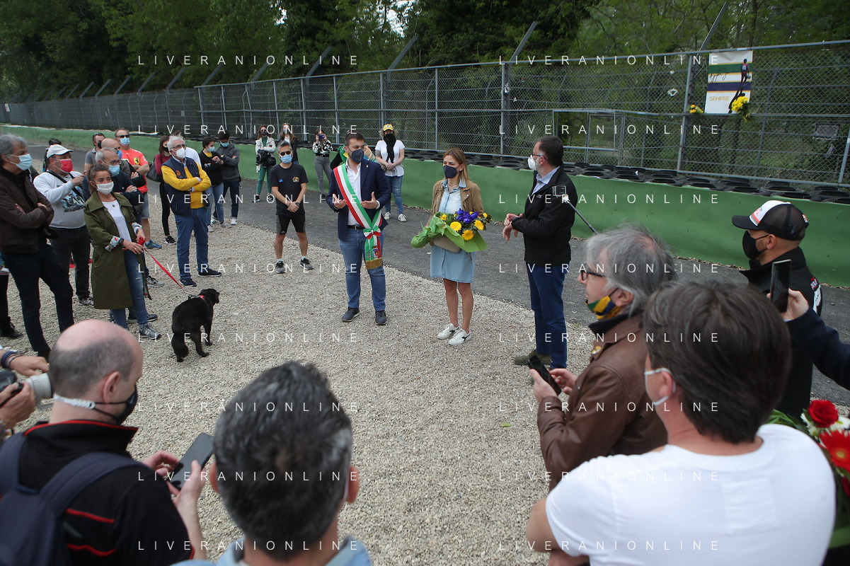 IMOLA 01 05 2021 AUTODROMO ENZO E DINO FERRARI COMMEMORAZIONE A RICORDO DI AYRTON SENNA CHE E' MORTO IL 01 05 1994 E IN RICORDO DI ROLAND RATZENBERGER DECEDUTO IL GIORNO PRIMA ALLA CURVA TOSA NELLA FOTO SINDACO MARCO PANIERI ASSESSORE ELENA PENAZZI E DIRETTORE DELL'AUTODROMO PIETRO BENVENUTI FOTO GIANNI SANNA-AG ALDO LIVERANI SAS