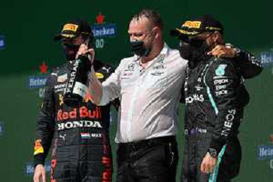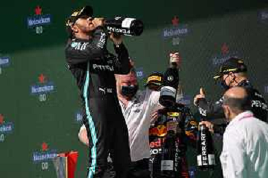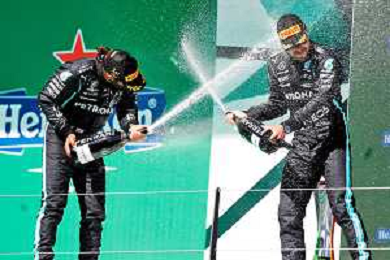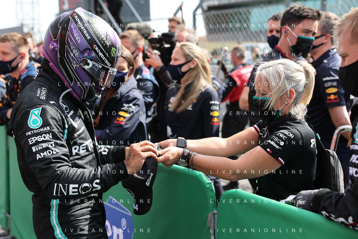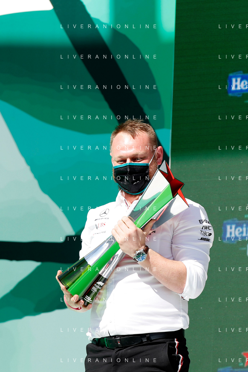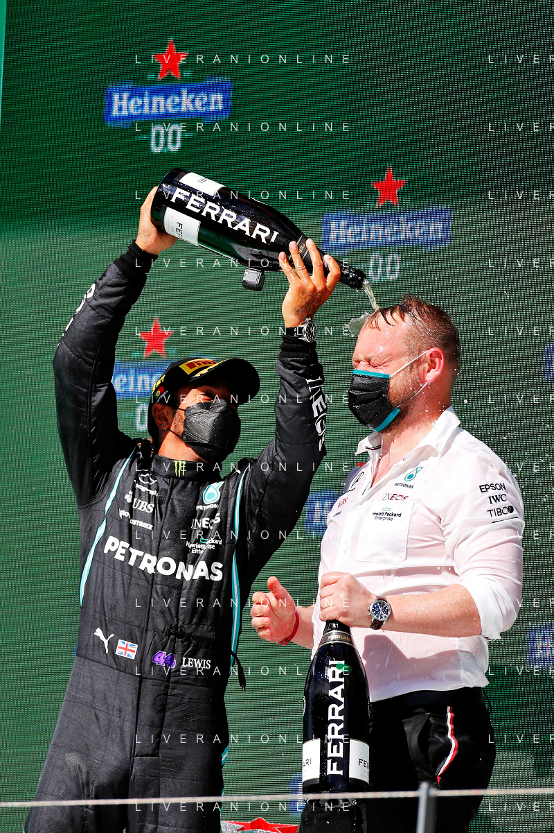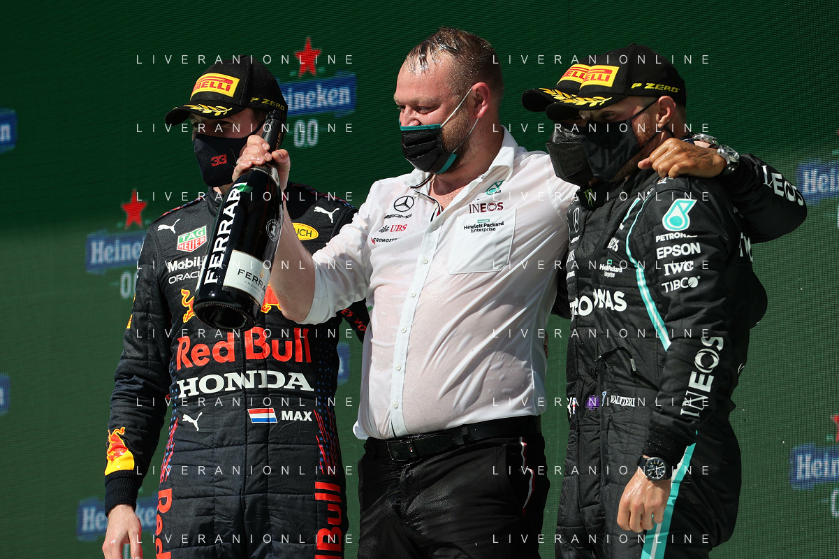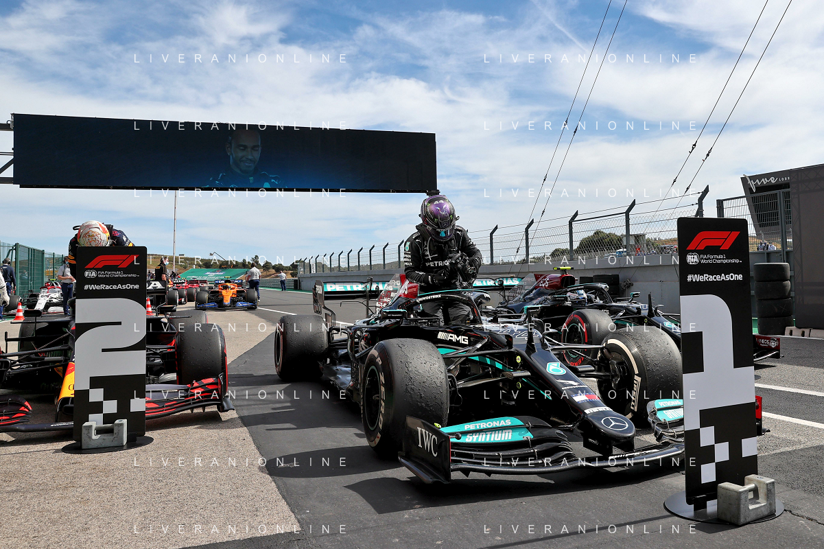 1st place Lewis Hamilton (GBR) Mercedes AMG F1, 2nd place Max Verstappen (NLD) Red Bull Racing and 3rd place Valtteri Bottas (FIN) Mercedes AMG F1. 02.05.2021. Formula 1 World Championship, Rd 3, Portuguese Grand Prix, Portimao, Portugal, Race Day. - www.xpbimages.com, EMail: requests@xpbimages.com © Copyright: Batchelor / XPB Images/ AGENZIA ALDO LIVERANI SAS - ITALY ONLY EDITORIAL USE ONLY - GP F1 World Championship Portogallo Grand Prix, Portimao 02.05.2021