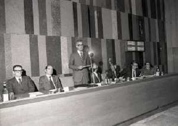 RETROSPETTIVA ANTONIO GIOLITTI POLITICO NELLAFOTO ANTONIO GIOLITTI A MILANO NELL'ANNO 1973 PARLA AGLI INDUSTRIALI A MILANO AG ALDO LIVERANI SAS