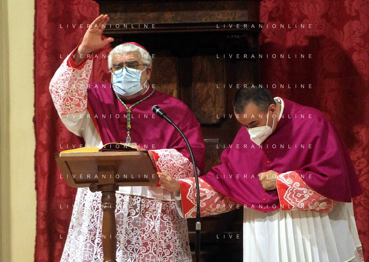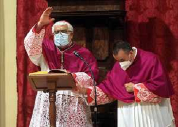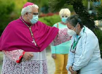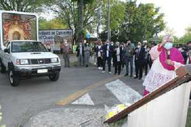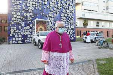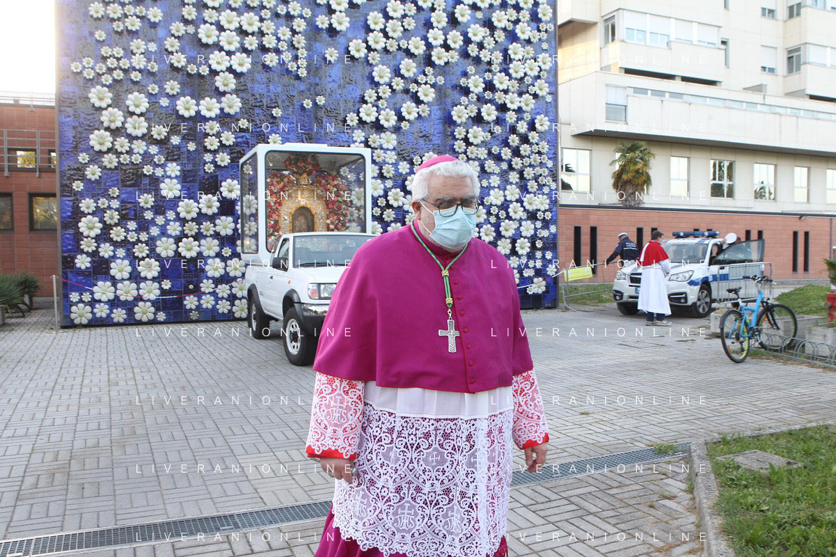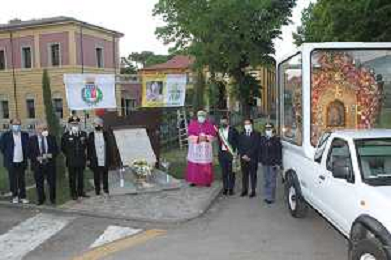 IMOLA 09 05 2021 MADDONA DEL PIRATELLO ARRIVA IN CITTA' NELLA FOTO VESCOVO GIOVANNI MOSCIATTI CON OPERATORE SANITARIO FOTO GIANNI SANNA-AG ALDO LIVERANI SAS