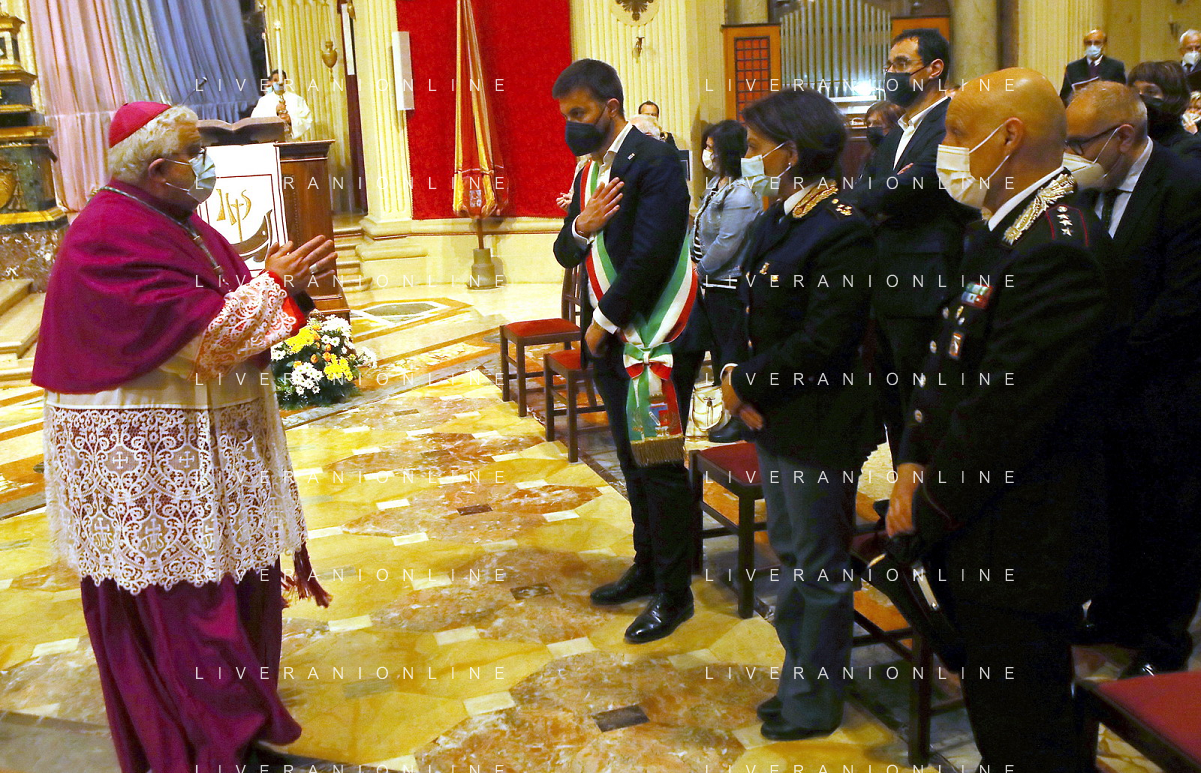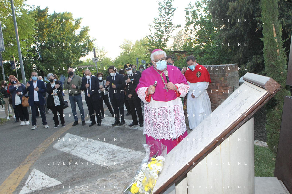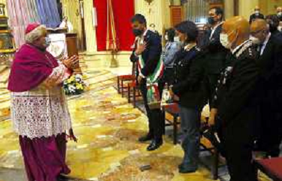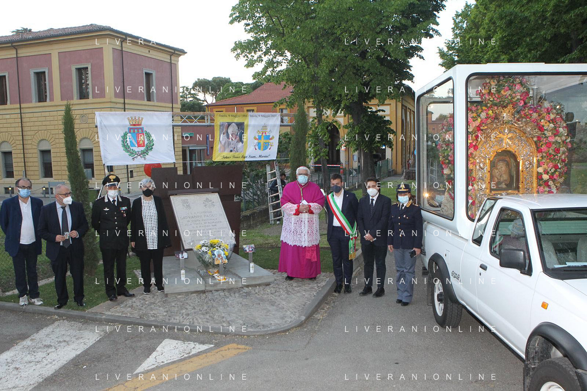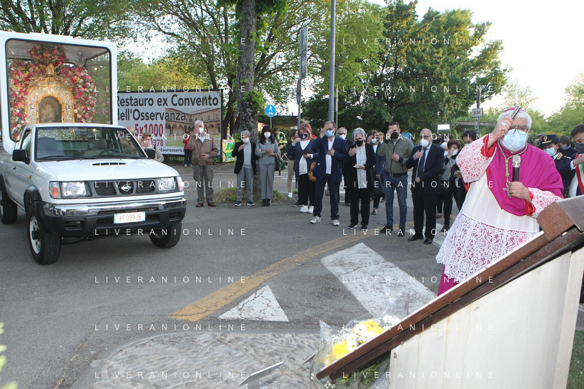 IMOLA 09 05 2021 MADDONA DEL PIRATELLO ARRIVA IN CITTA' NELLA FOTO VESCOVO GIOVANNI MOSCIATTI SALUTA LE AUTORITA' SINDACO MARCO PANIERI E LE FORZE DEL ORDINE FOTO GIANNI SANNA-AG ALDO LIVERANI SAS