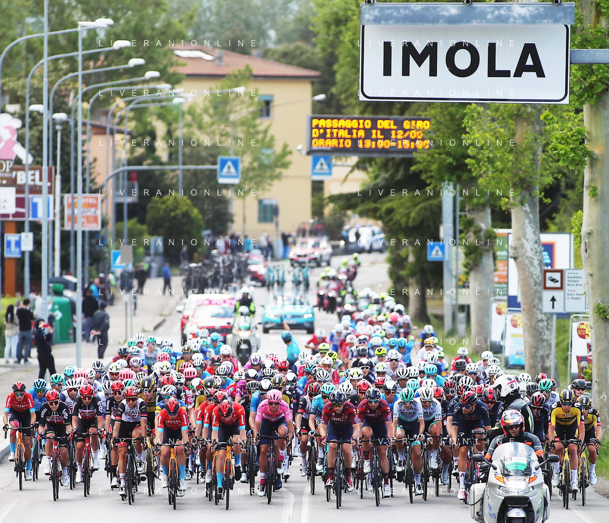 IMOLA 12 05 2021 PASSAGGIO DEL GIRO D'ITALIA A IMOLA NELLA FOTO IL GRUPPO LASCIA LA CITTA' MAGLIA ROSA ALESSANDRO DE MARCHI FOTO GIANNI SANNA-AG ALDO LIVERANI SAS