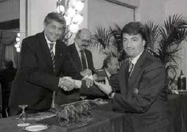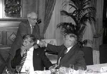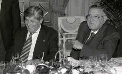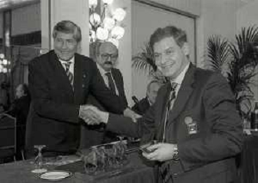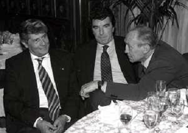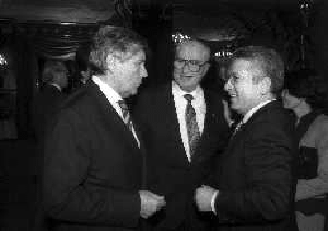 19-12-1996 MILANO HOTEL PPRINCIPE E SAVOIA FESTA NATALIZIA LEGA CALCIO NELLA FOTO LUCIANO NIZZOLA CON GIULIO CAMPANATI E ANTONIO MATARRESE AG ALDO LIVERANI SAS