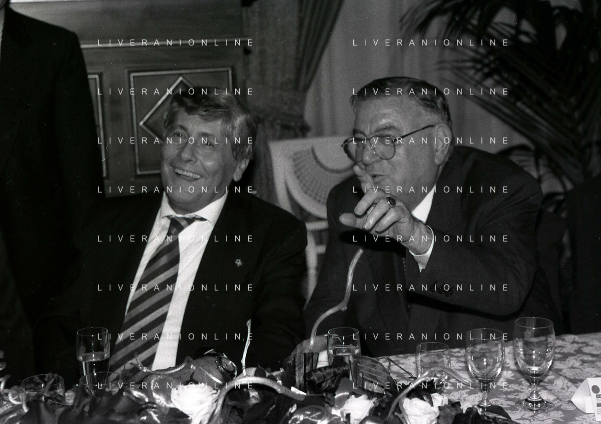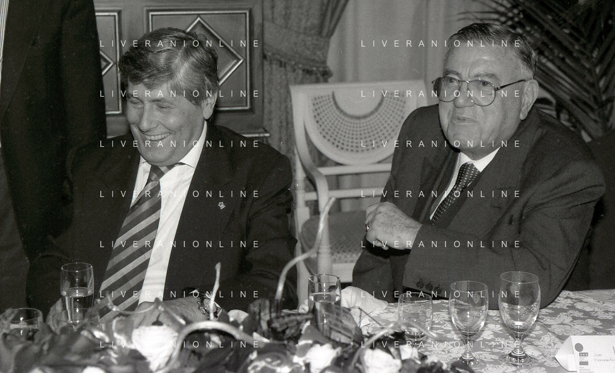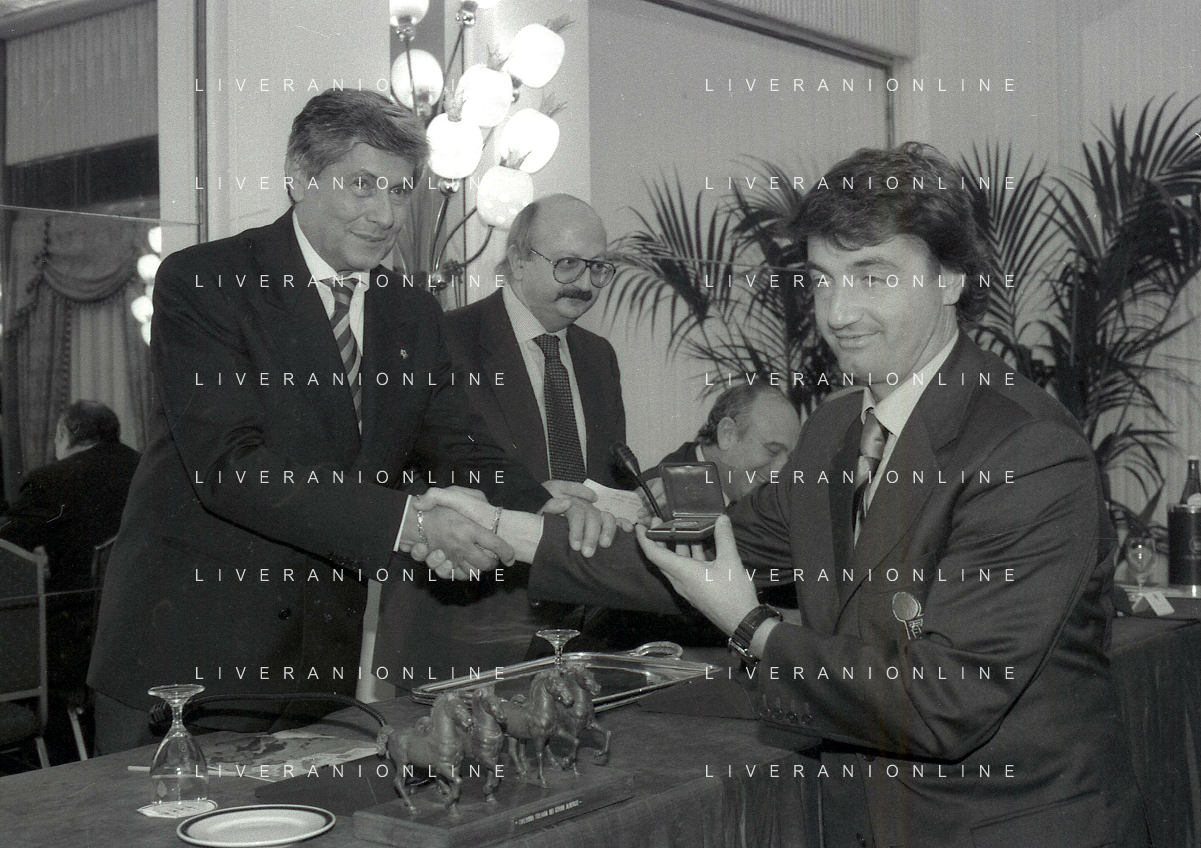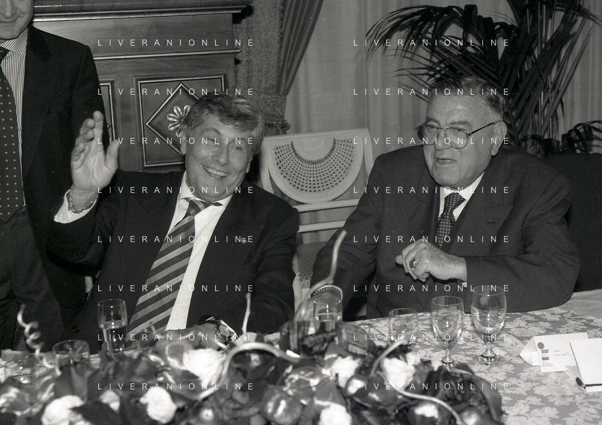 19-12-1996 MILANO HOTEL PPRINCIPE E SAVOIA FESTA NATALIZIA LEGA CALCIO NELLA FOTO MICHELE TIGANI-GIANCARLO ABETE-SALVATORE LOMBARDO AG ALDO LIVERANI SAS