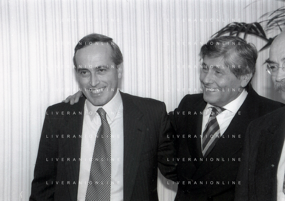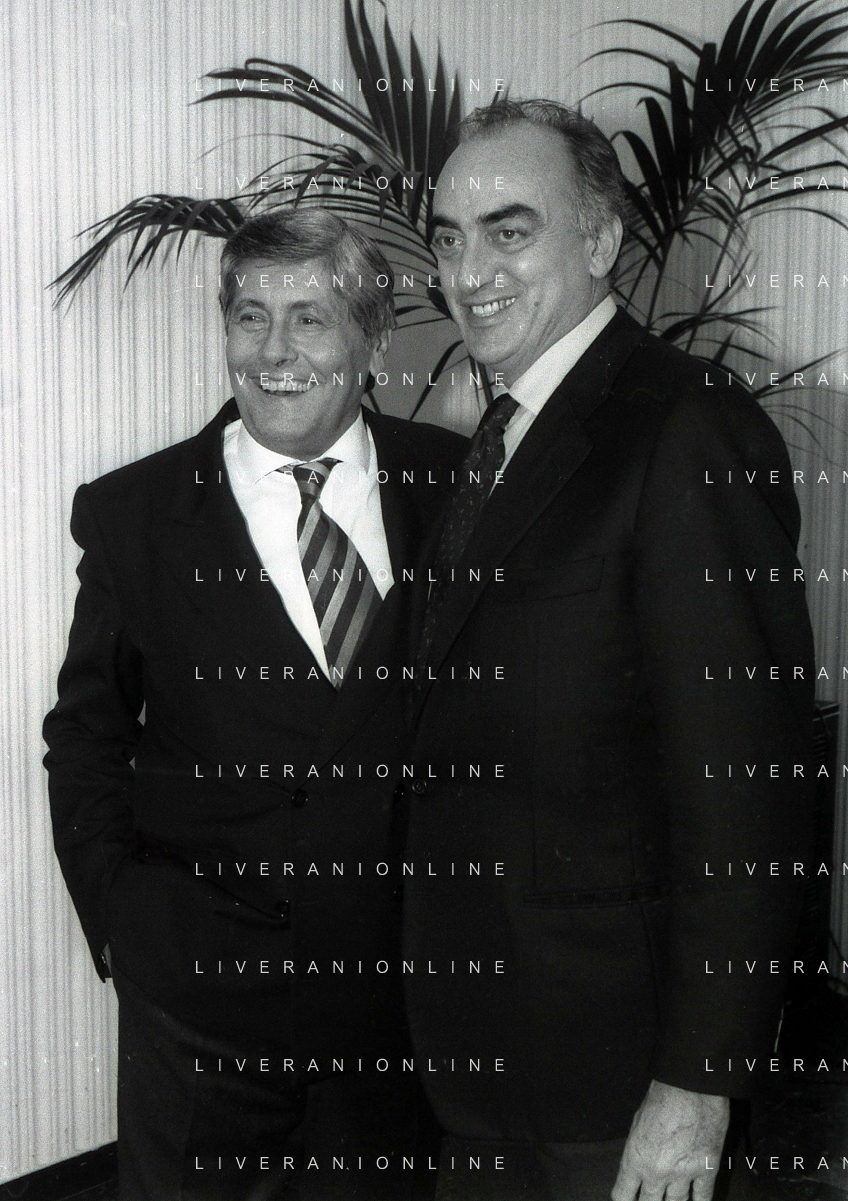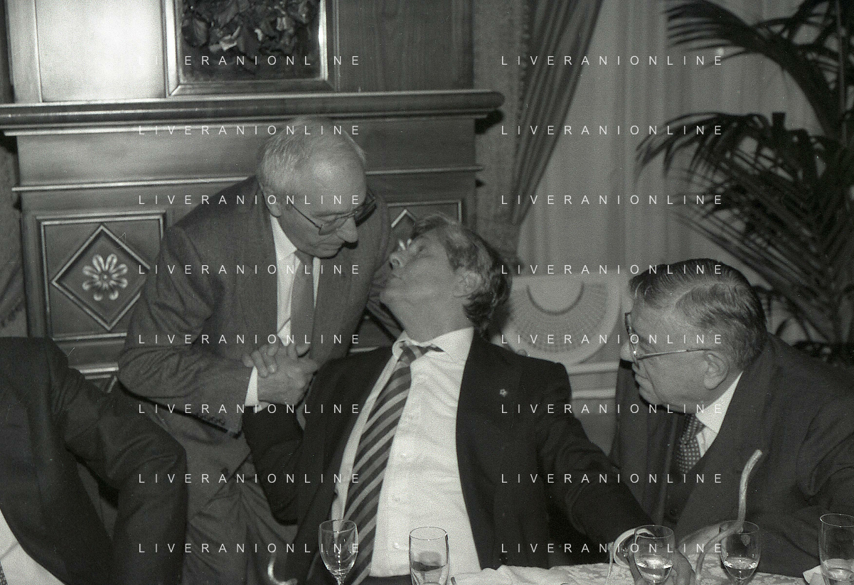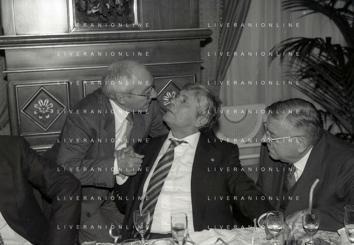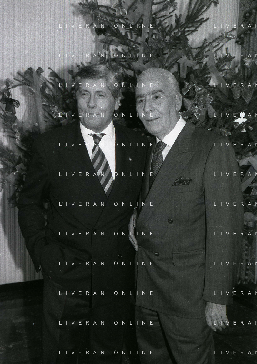 19-12-1996 MILANO HOTEL PPRINCIPE E SAVOIA FESTA NATALIZIA LEGA CALCIO NELLA FOTO MICHELE TIGANI-GIANCARLO ABETE-SALVATORE LOMBARDO AG ALDO LIVERANI SAS