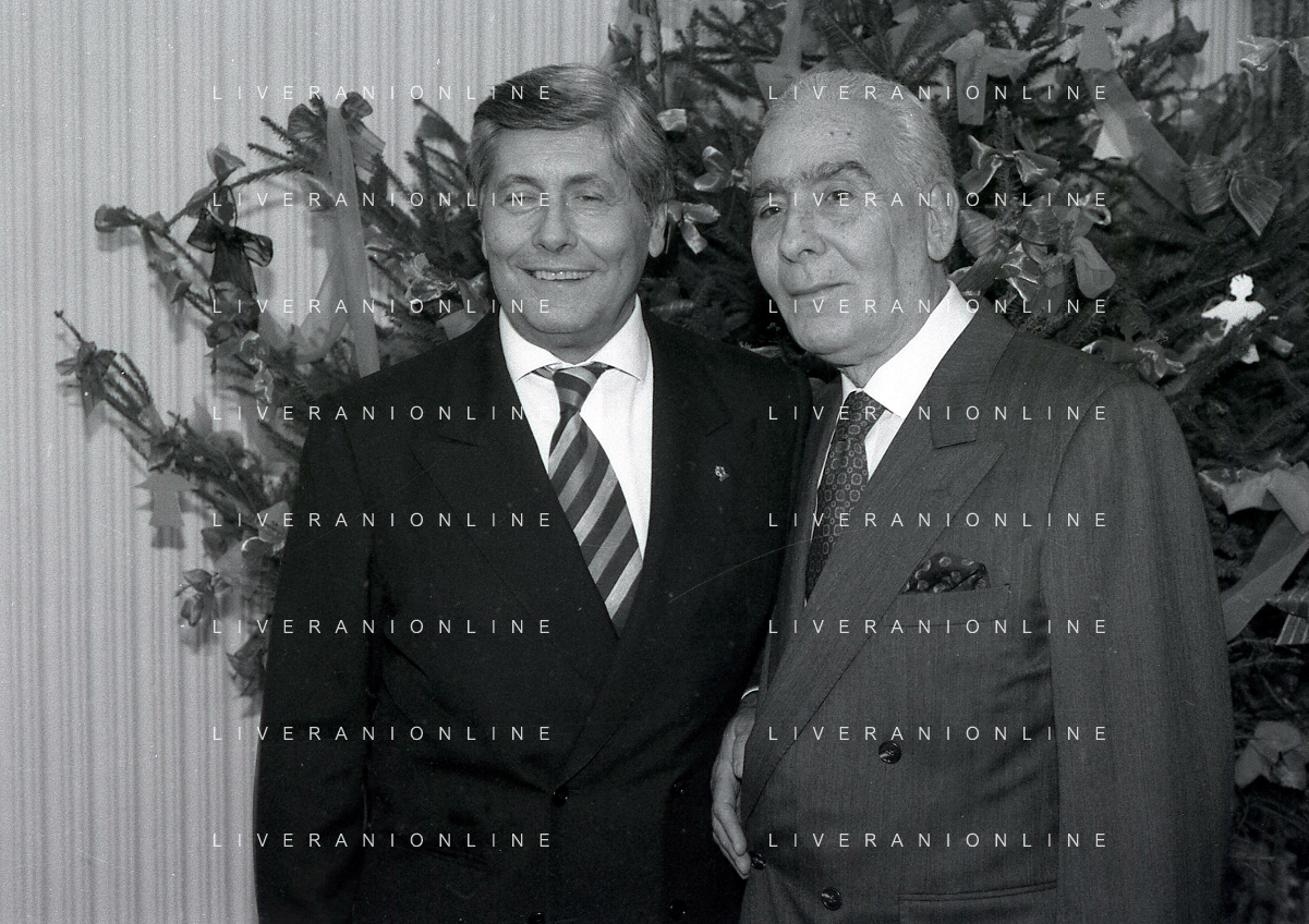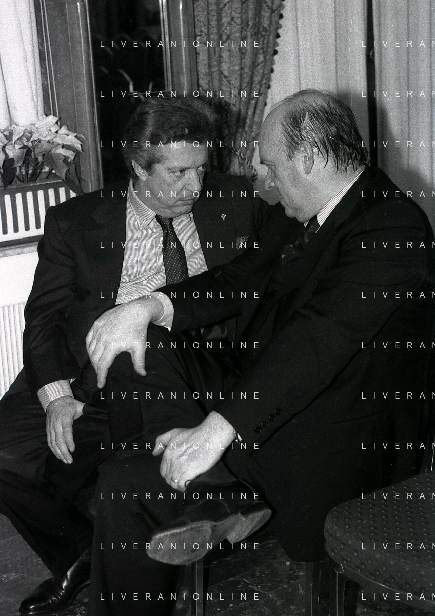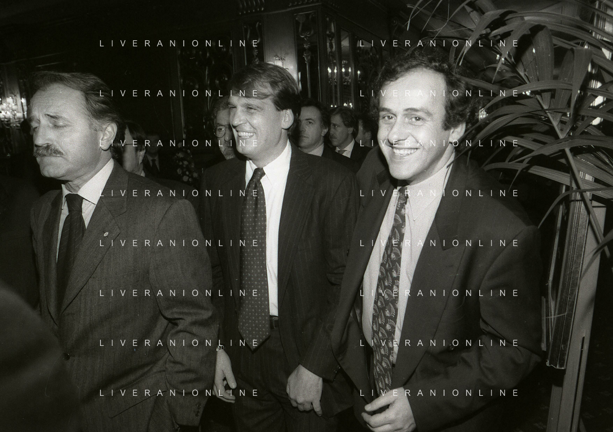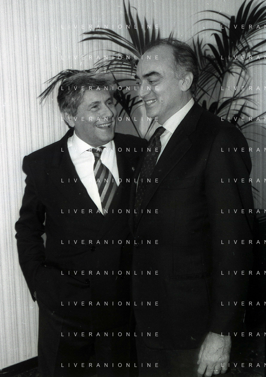 19-12-1996 MILANO HOTEL PPRINCIPE E SAVOIA FESTA NATALIZIA LEGA CALCIO NELLA FOTO MICHELE TIGANI-GIANCARLO ABETE-SALVATORE LOMBARDO AG ALDO LIVERANI SAS