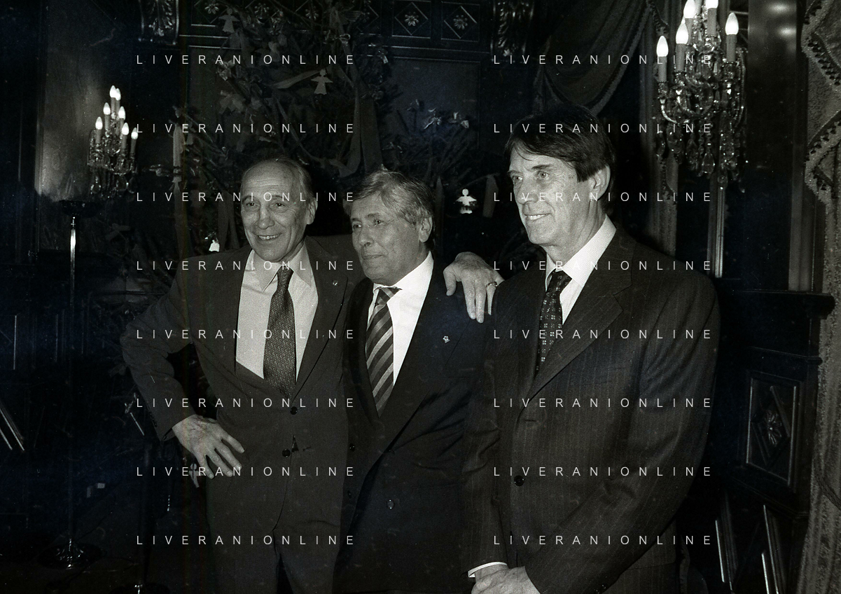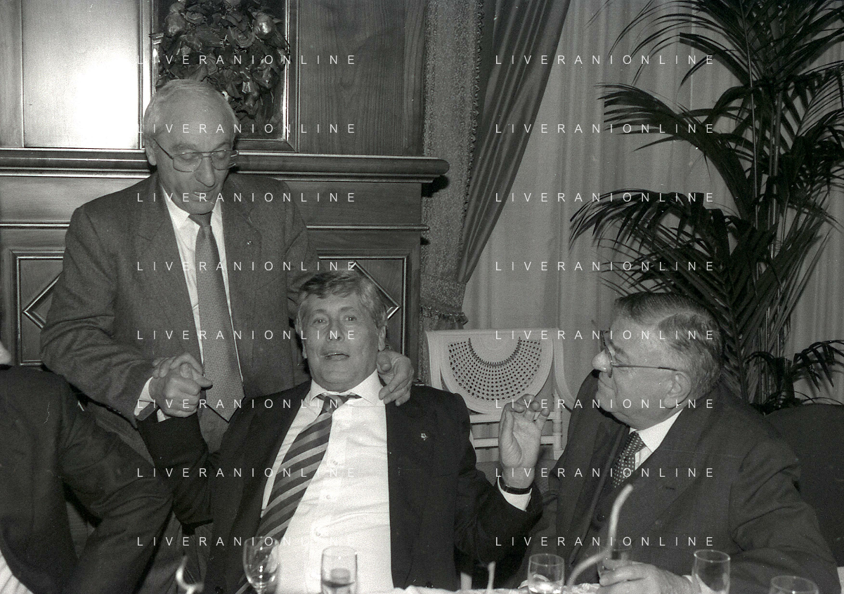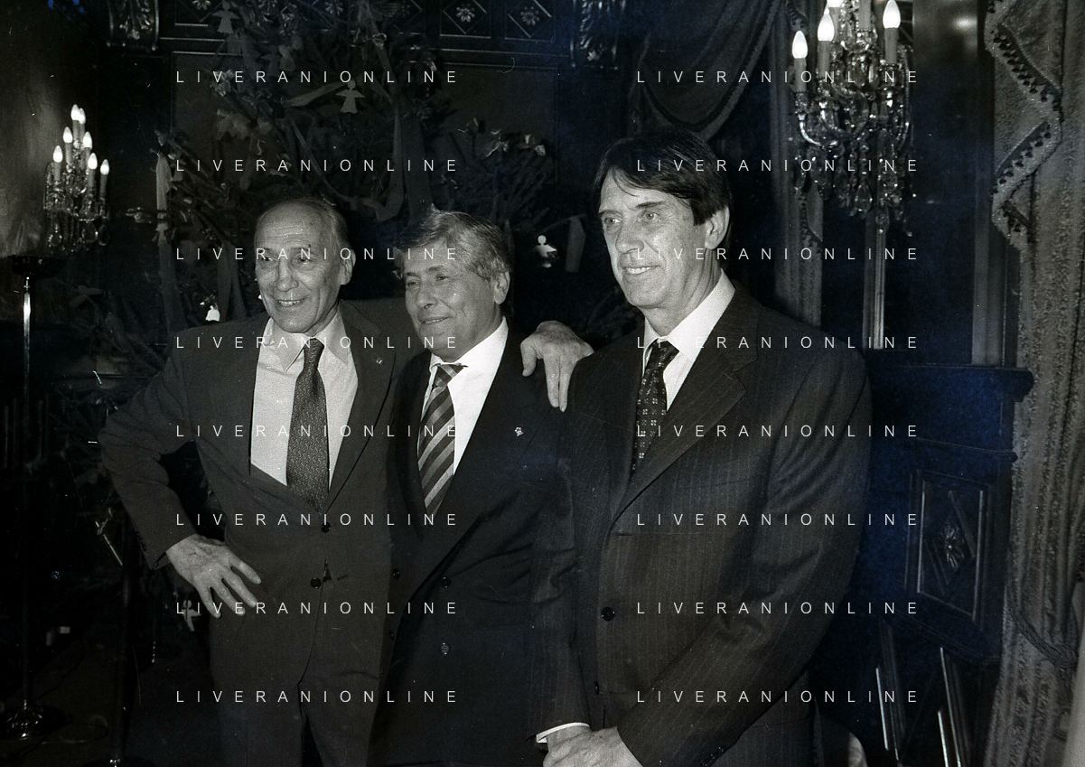 19-12-1996 MILANO HOTEL PPRINCIPE E SAVOIA FESTA NATALIZIA LEGA CALCIO NELLA FOTO DOMENICO LUZZARA -LUCIANO NIZZOLA E ROMEO ANCONETANI AG ALDO LIVERANI SAS