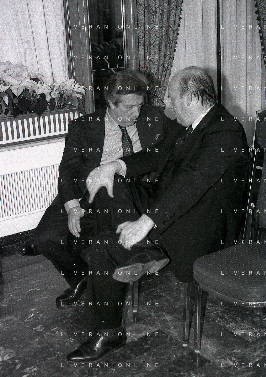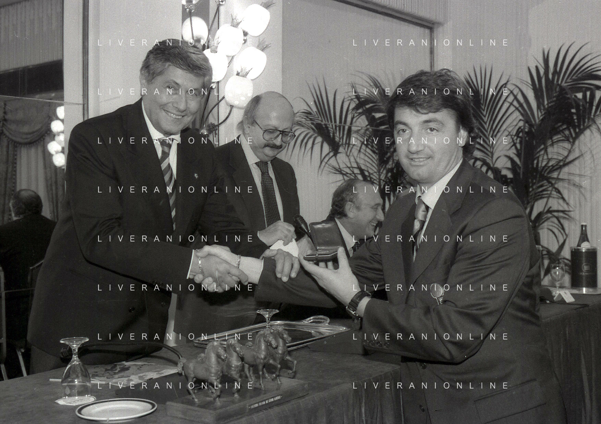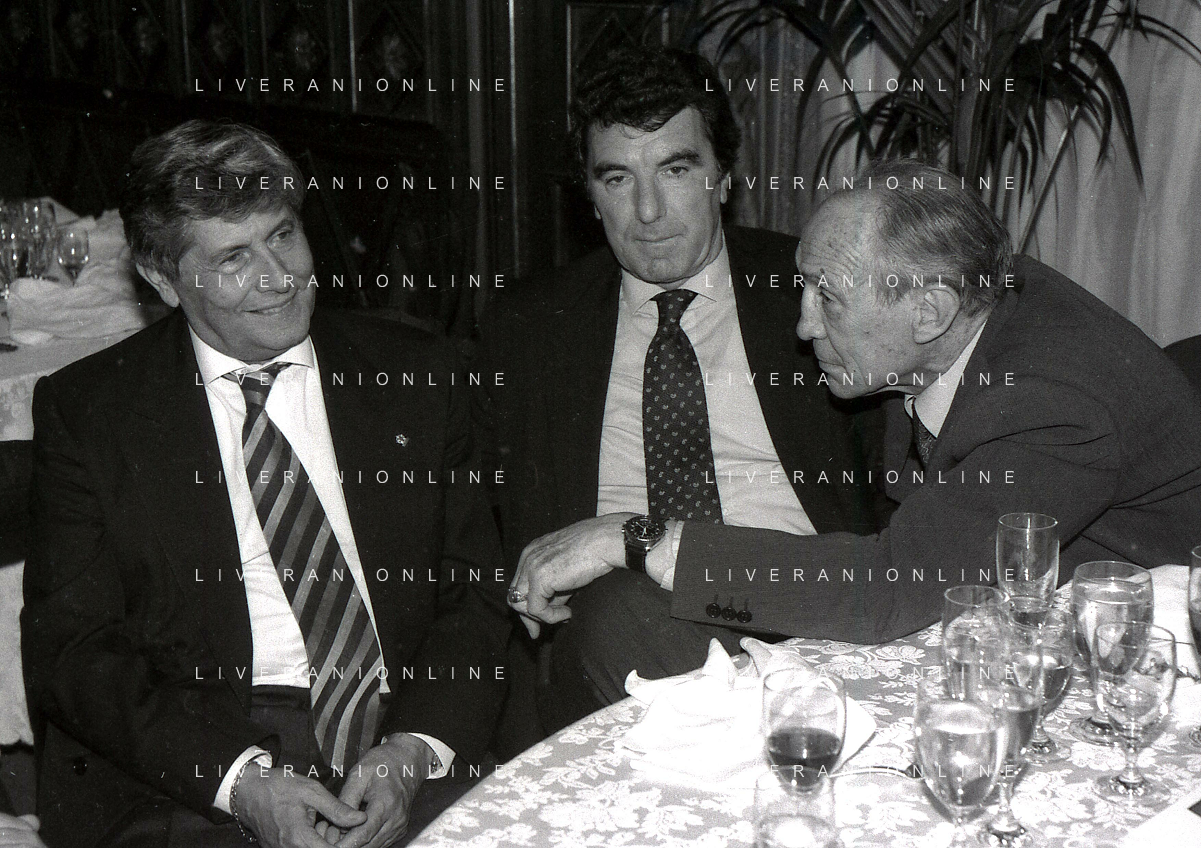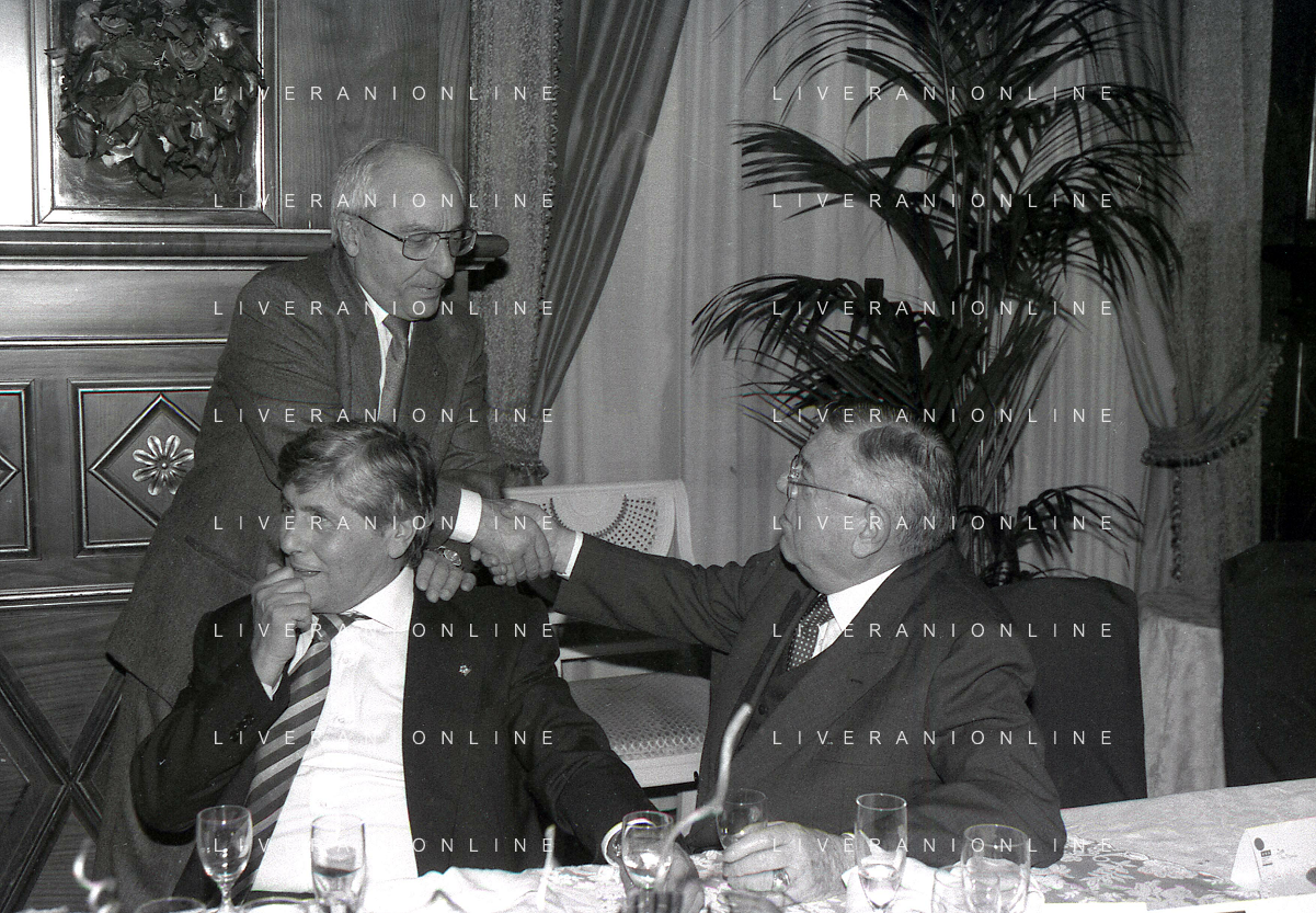 19-12-1996 MILANO HOTEL PPRINCIPE E SAVOIA FESTA NATALIZIA LEGA CALCIO NELLA FOTO DOMENICO LUZZARA -LUCIANO NIZZOLA E ROMEO ANCONETANI AG ALDO LIVERANI SAS