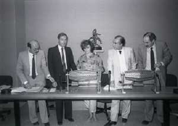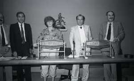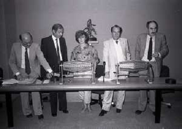1984 MILANO LEGA CALCIO SORTEGGIO ARBITRI NELLA FOTO IL SORTEGGIO DEGLI ARBITRI IN LEGA CALCIO AG ALDO LIVERANI SAS