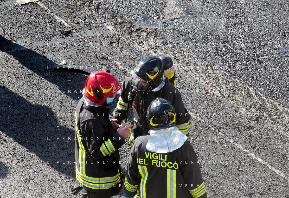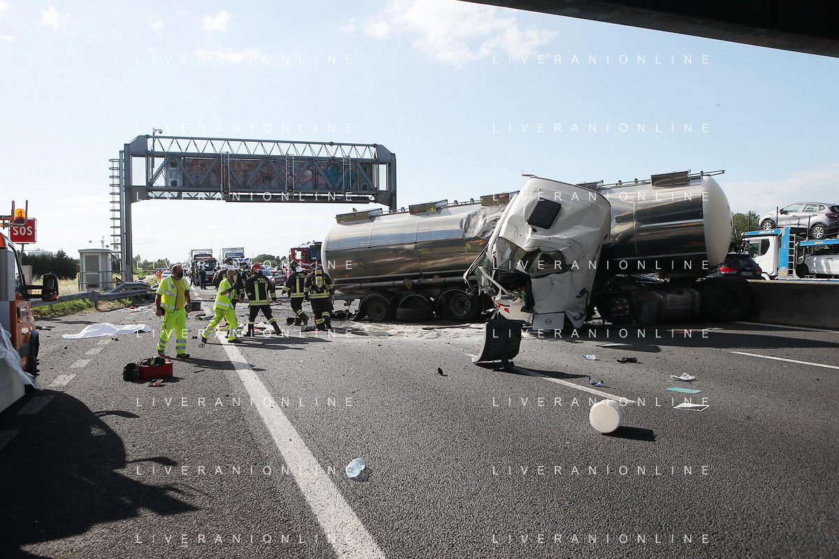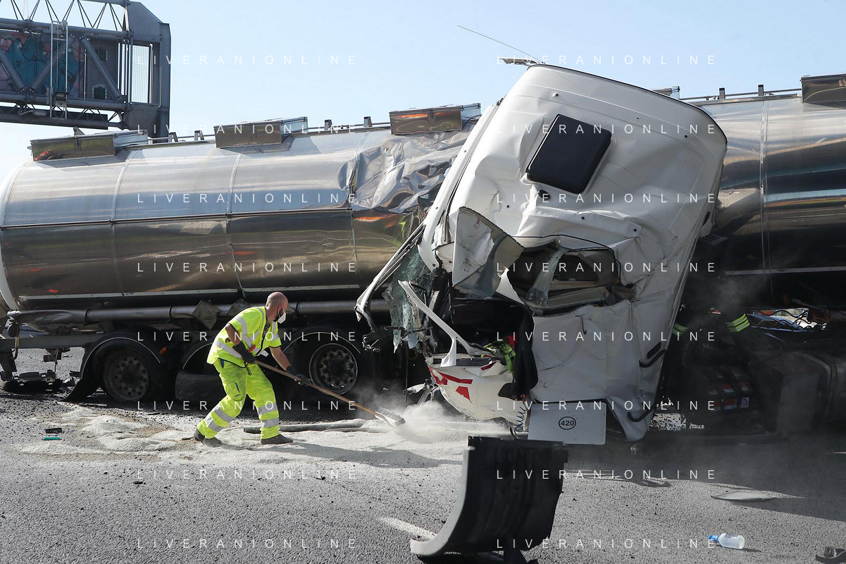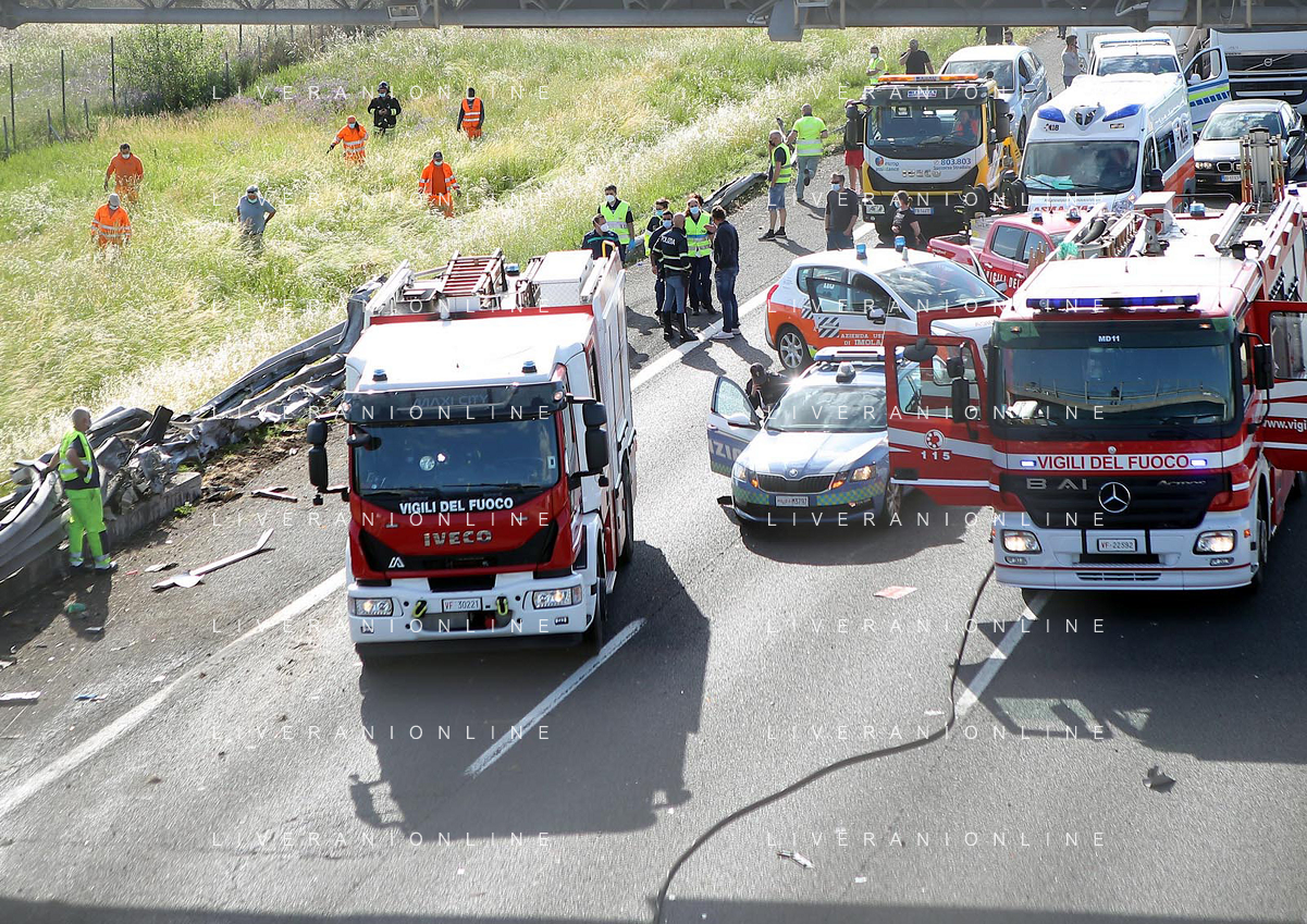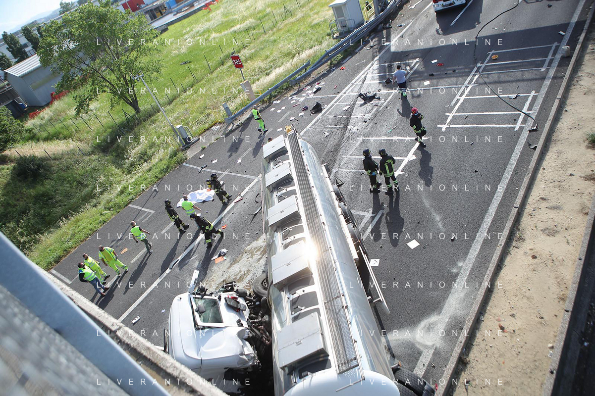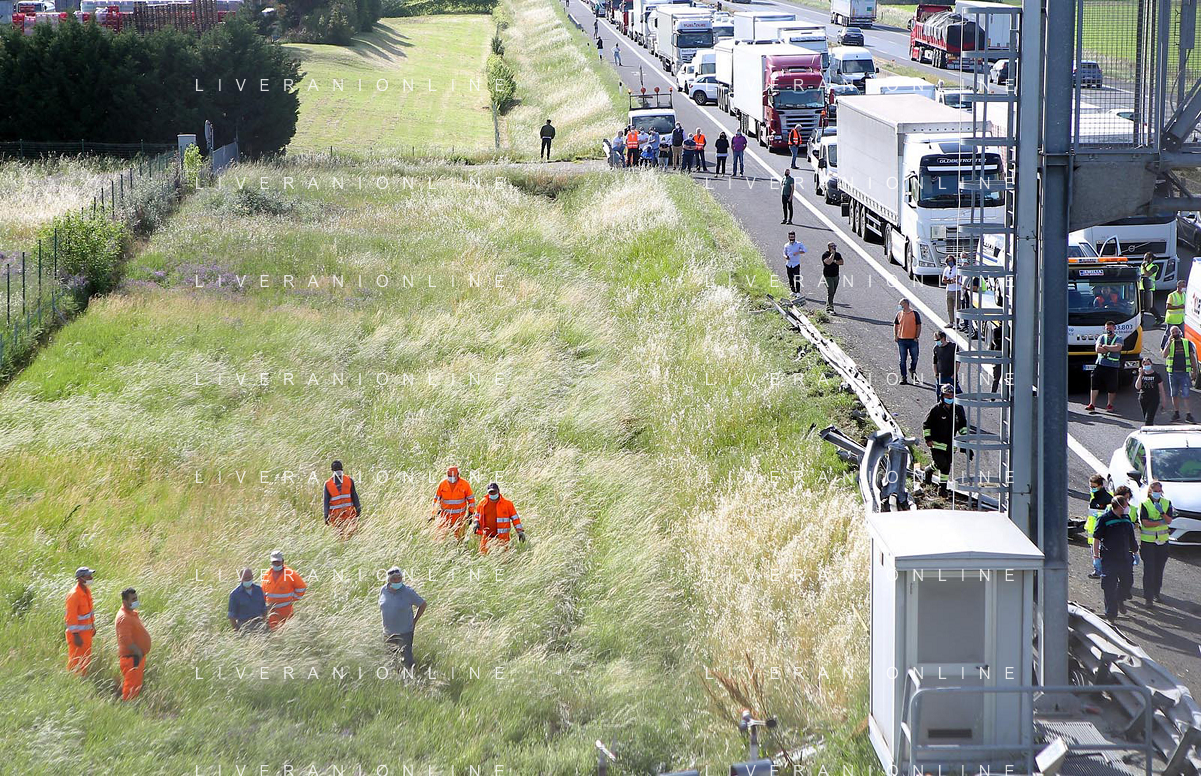 IMOLA 25 05 2021 AUTOSTRADA A14 INCIDENTE STRADALE MORTALE KM 49 CAMION PERDE IL CONTROLLO E SI SCHIANTA CONTRO GUARD RAIL E SI FERMA SOTTO IL CAVALCAVIA SUL POSTO 118 VIGILI DEL FUOCO POLIZIA STRADALE - 14 file