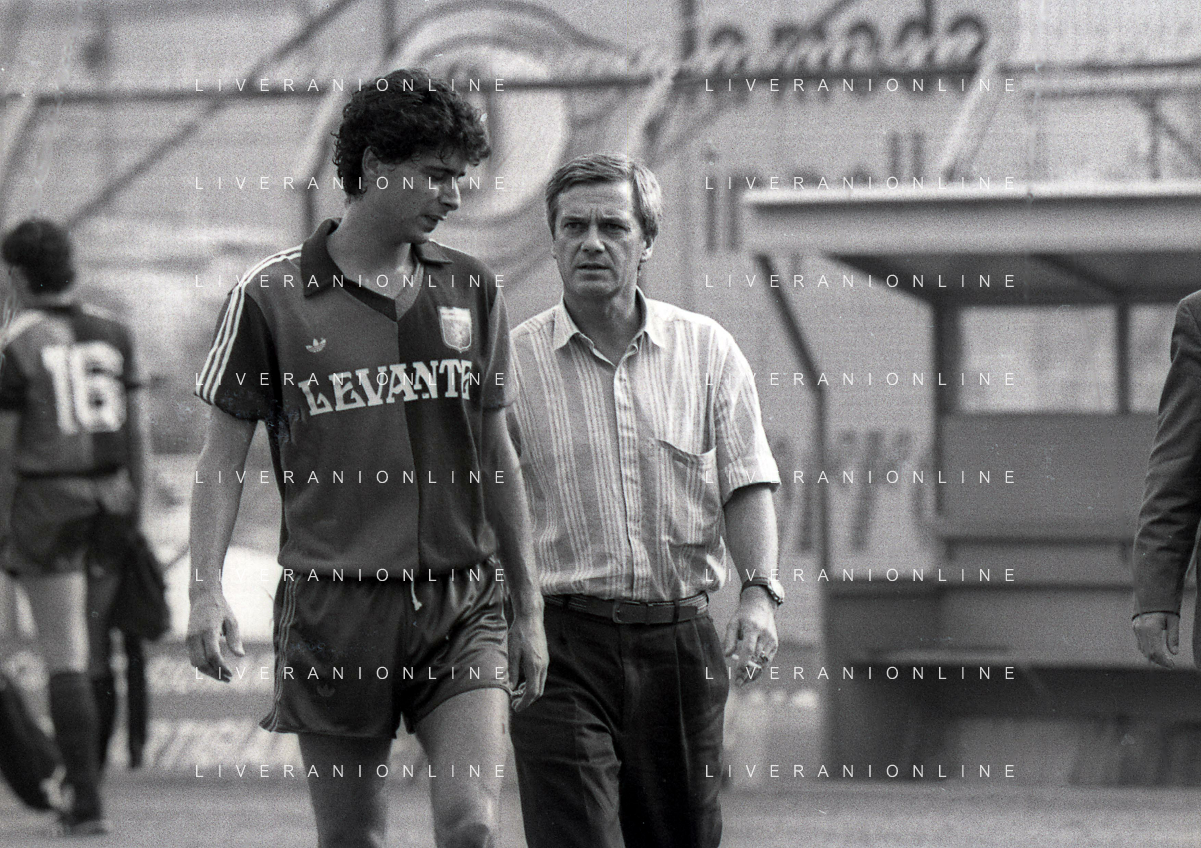 20-09-1987 GENOVA CAMPIONATO DI CALCIO SERIE B GENOA -PADOVA 0-1 NELLA FOTO LUIGI SIMONI ALLENATORE GENOA CALCIO E NICOLA CARICOLA AG ALDO LIVERANI SAS