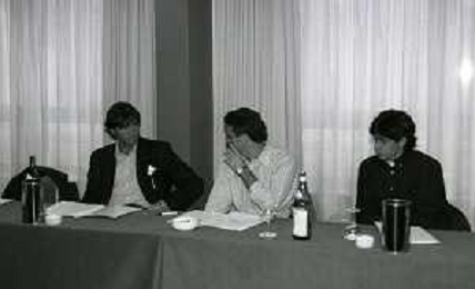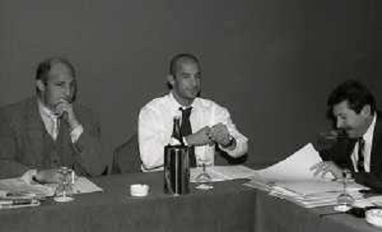 1995 MILANO DIRETTIVO AIC ASSOCIAZIONE CALCIATORI ITALIANI NELLA FOTO ENZO ZANIN -GIANLUCA VIALLI E SILVANO MAIOLI AG ALDO LIVERANI SAS