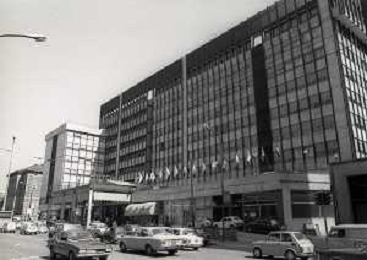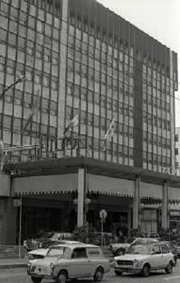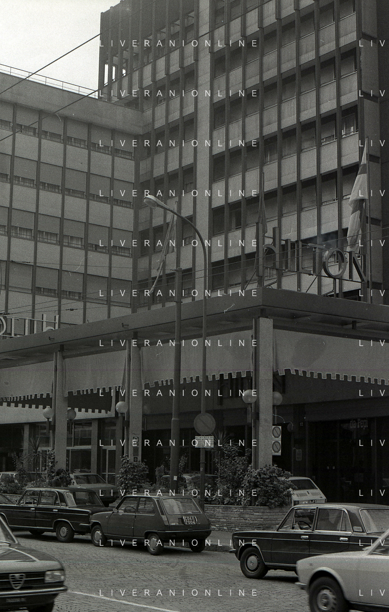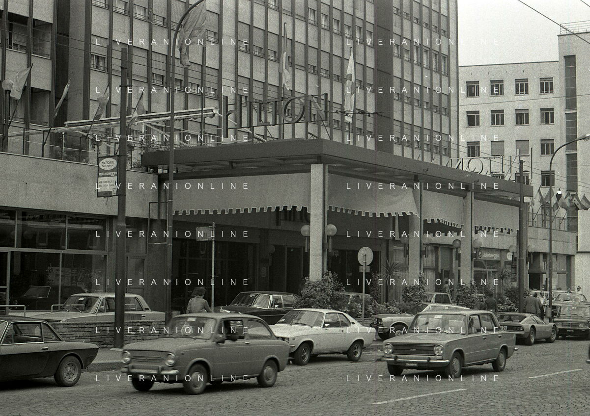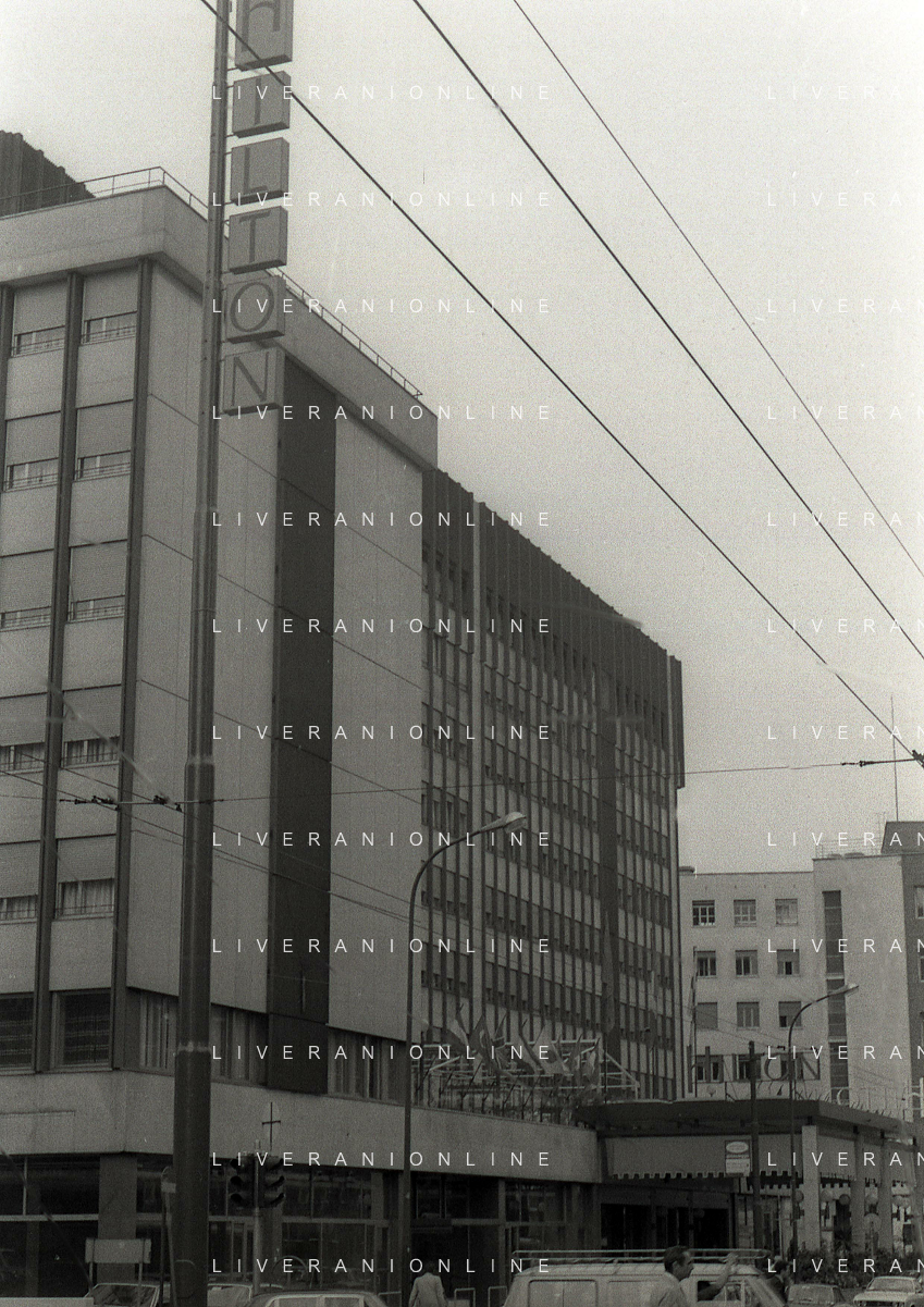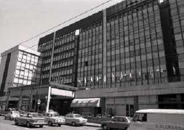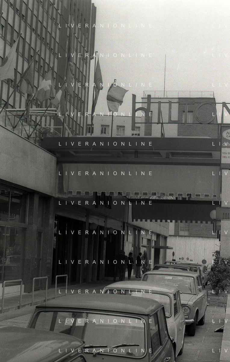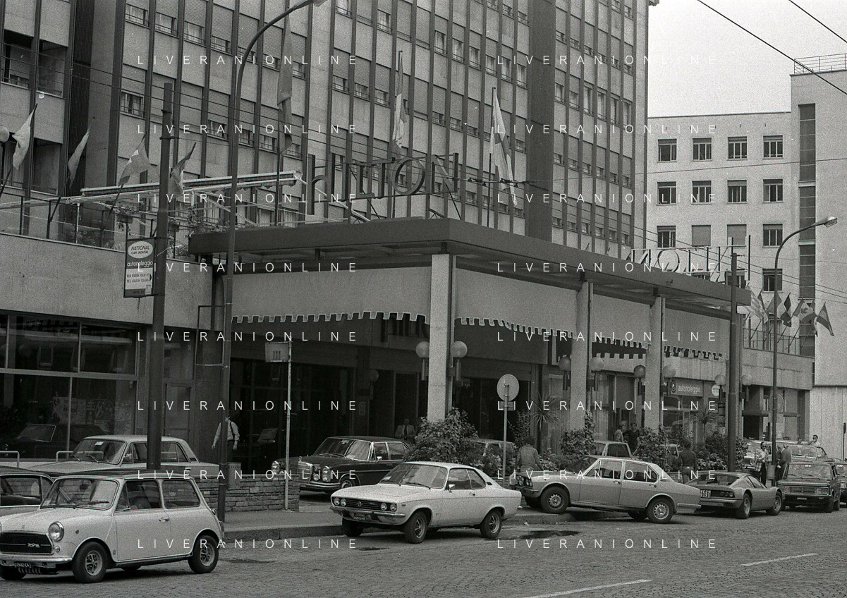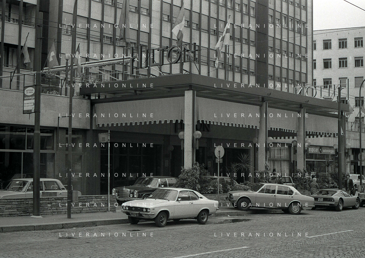 1973 MILANO HOTEL HILTON SEDE DEL CALCIO MERCATO NELLA FOTO ESTERNI E INTERNI HOTEL HILTON DI VIA GALVANI DOVE SI SVOLGERA' IL CALCIO MERCATO AG ALDO LIVERANI SAS