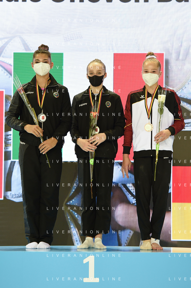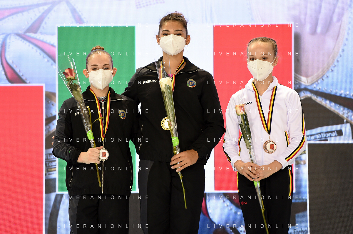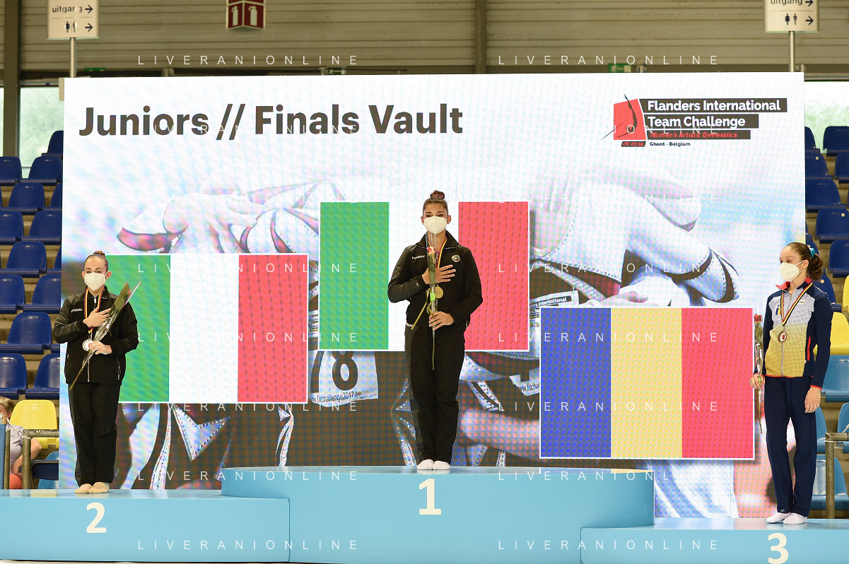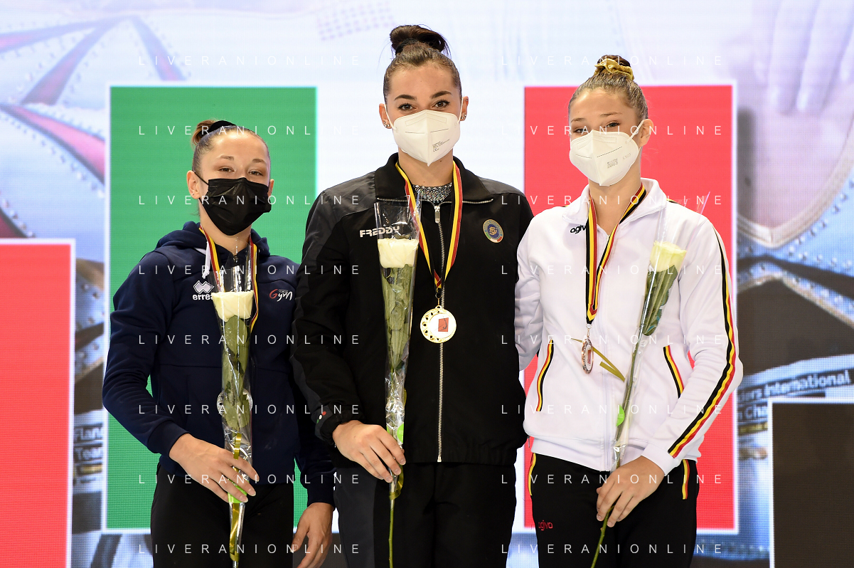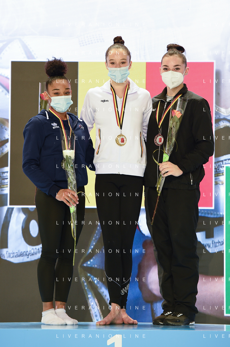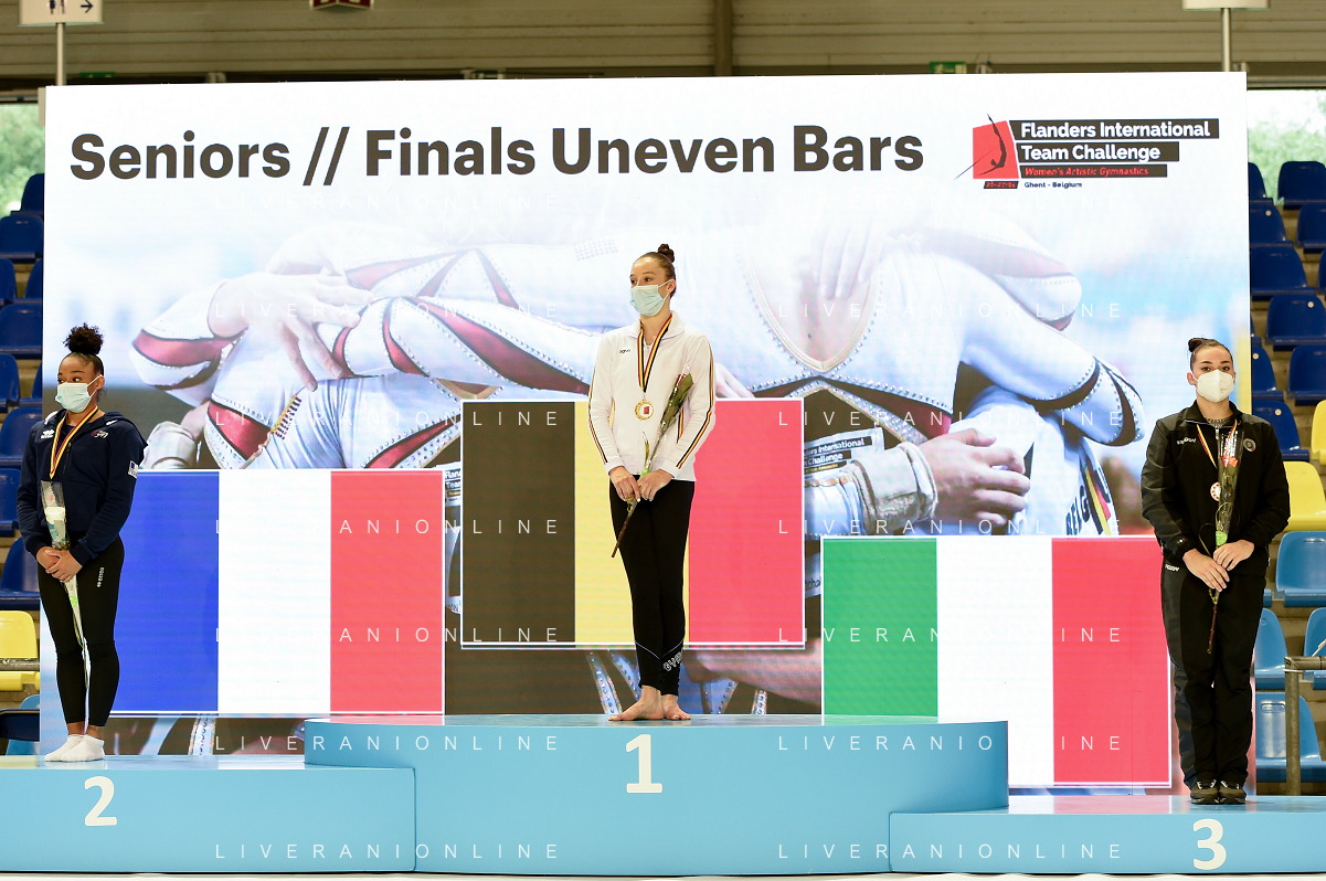 Tomasii/LMedia - Artistico Gymnastic - GHENT Flanders International Team Challenge 2021 - Gymnastics 27 June 2021 - Flanders Sports Arena, ghent, Italy Photo showing: Seniors Finals Uneven Bars 1) Nina Derwael 2) DE JESUS DOS SANTOS MÉLANIE 3) VILLA GIORGIA @Tomasii/LMedia AG ALDO LIVERANI SAS