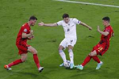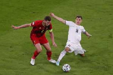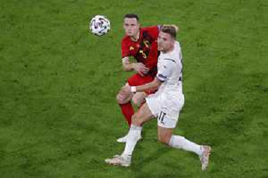 Campionato Europeo UEFA EURO 2020 gara dei Quarti di finale BELGIO vs ITALIA del 02/07/2021 - nella foto: Chiesa Federico(Italia) Thorgan Hazard ©Claudio Zamagni/Agenzia Aldo Liverani s.a.s. Chiesa Federico(Italia) Thorgan Hazard during European UEFA Championship - UEFA Euro 2020 soccer match between Belgium and Italy at Allianz Arena Stadium in Munich on July 02 2021 photo credit by Claudio Zamagni/Aldo Liverani Photo Agency