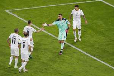 Campionato Europeo UEFA EURO 2020 gara dei Quarti di finale BELGIO vs ITALIA del 02/07/2021 - nella foto: Donnarumma Gianluigi(Italia) Jorginho(Italia) Di Lorenzo Giovanni(Italia)Bonucci Leonardo(Italia)Chiellini Giorgio(Italia) ©Claudio Zamagni/Agenzia Aldo Liverani s.a.s. Donnarumma Gianluigi(Italia) Jorginho(Italia) Di Lorenzo Giovanni(Italia)Bonucci Leonardo(Italia)Chiellini Giorgio(Italia) during European UEFA Championship - UEFA Euro 2020 soccer match between Belgium and Italy at Allianz Arena Stadium in Munich on July 02 2021 photo credit by Claudio Zamagni/Aldo Liverani Photo Agency