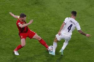 Campionato Europeo UEFA EURO 2020 gara dei Quarti di finale BELGIO vs ITALIA del 02/07/2021 - nella foto: Barella Nicolo’(Italia)Jan Vertonghen ©Claudio Zamagni/Agenzia Aldo Liverani s.a.s. Barella Nicolo’(Italia)Jan Vertonghen during European UEFA Championship - UEFA Euro 2020 soccer match between Belgium and Italy at Allianz Arena Stadium in Munich on July 02 2021 photo credit by Claudio Zamagni/Aldo Liverani Photo Agency