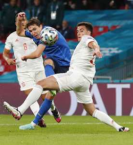 Campionato Europeo UEFA EURO 2020 gara semifinale ITALIA - SPAGNA del 06/07/2021 - nella foto: Gerard Moreno - Emerson(Italia) ©Claudio Zamagni/Agenzia Aldo Liverani s.a.s. Gerard Moreno - Emerson(Italia) during European UEFA Championship - UEFA Euro 2020 semifinal soccer match between Italy and Spain at Wembley Stadium in London on July 06 2021 photo credit by Claudio Zamagni/Aldo Liverani Photo Agency