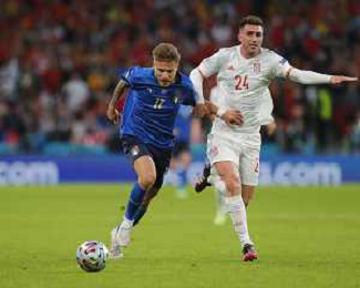 Campionato Europeo UEFA EURO 2020 gara semifinale ITALIA - SPAGNA del 06/07/2021 - nella foto: Berardi Domenico(Italia) ©Claudio Zamagni/Agenzia Aldo Liverani s.a.s. Berardi Domenico(Italia) during European UEFA Championship - UEFA Euro 2020 semifinal soccer match between Italy and Spain at Wembley Stadium in London on July 06 2021 photo credit by Claudio Zamagni/Aldo Liverani Photo Agency