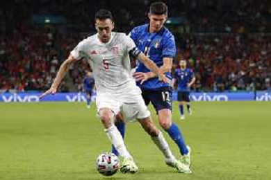 Campionato Europeo UEFA EURO 2020 gara semifinale ITALIA - SPAGNA del 06/07/2021 - nella foto: Sergio Busquets - Pessina Matteo(Italia) ©Claudio Zamagni/Agenzia Aldo Liverani s.a.s. Sergio Busquets - Pessina Matteo(Italia) during European UEFA Championship - UEFA Euro 2020 semifinal soccer match between Italy and Spain at Wembley Stadium in London on July 06 2021 photo credit by Claudio Zamagni/Aldo Liverani Photo Agency