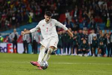 Campionato Europeo UEFA EURO 2020 gara semifinale ITALIA - SPAGNA del 06/07/2021 - nella foto: Álvaro Morata tira il rigore ©Claudio Zamagni/Agenzia Aldo Liverani s.a.s. Álvaro Morata during European UEFA Championship - UEFA Euro 2020 semifinal soccer match between Italy and Spain at Wembley Stadium in London on July 06 2021 photo credit by Claudio Zamagni/Aldo Liverani Photo Agency