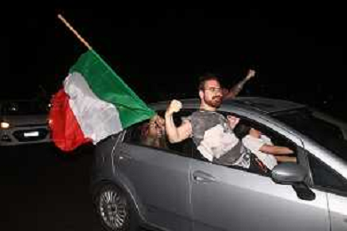 Esultanza e Festeggiamenti dei tifosi dell'Italia dopo la vittoria nella semifinale contro la Spagna agli Europei di Calcio 2020 - Reggio Emilia 06.07.2021