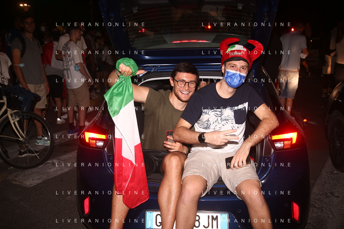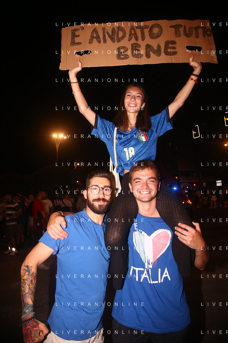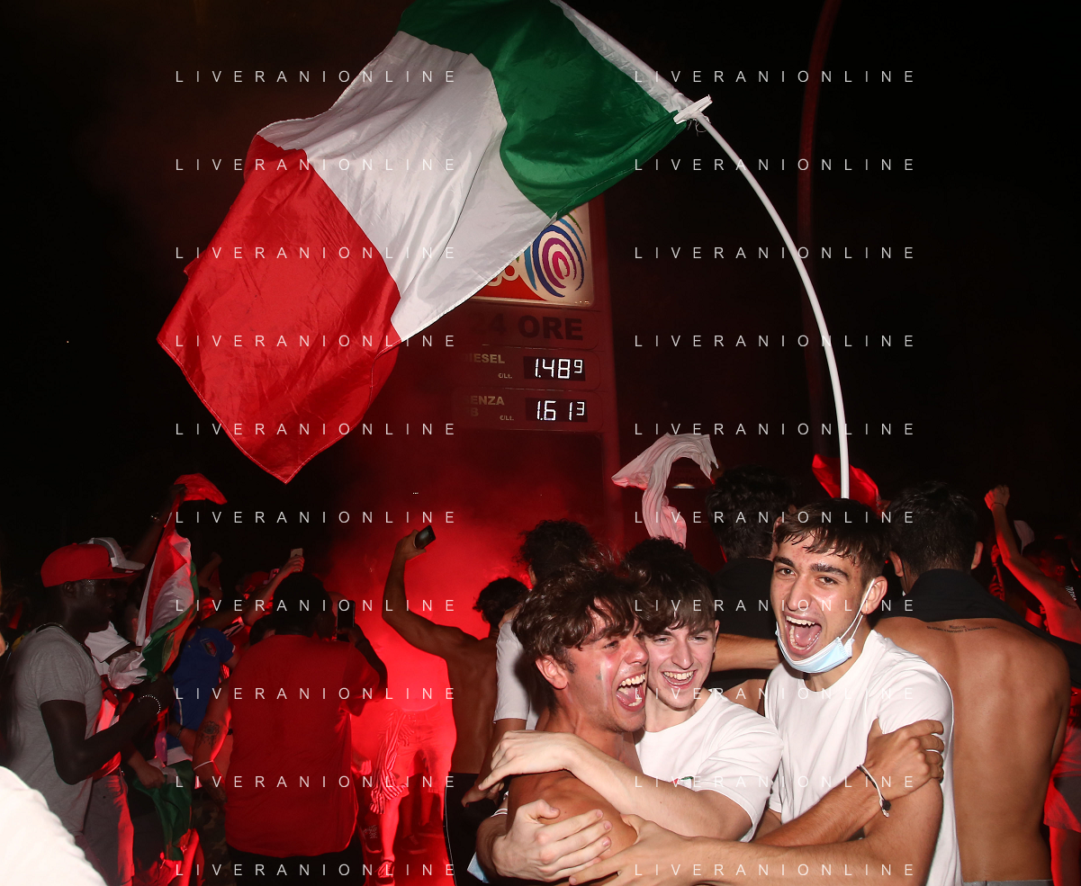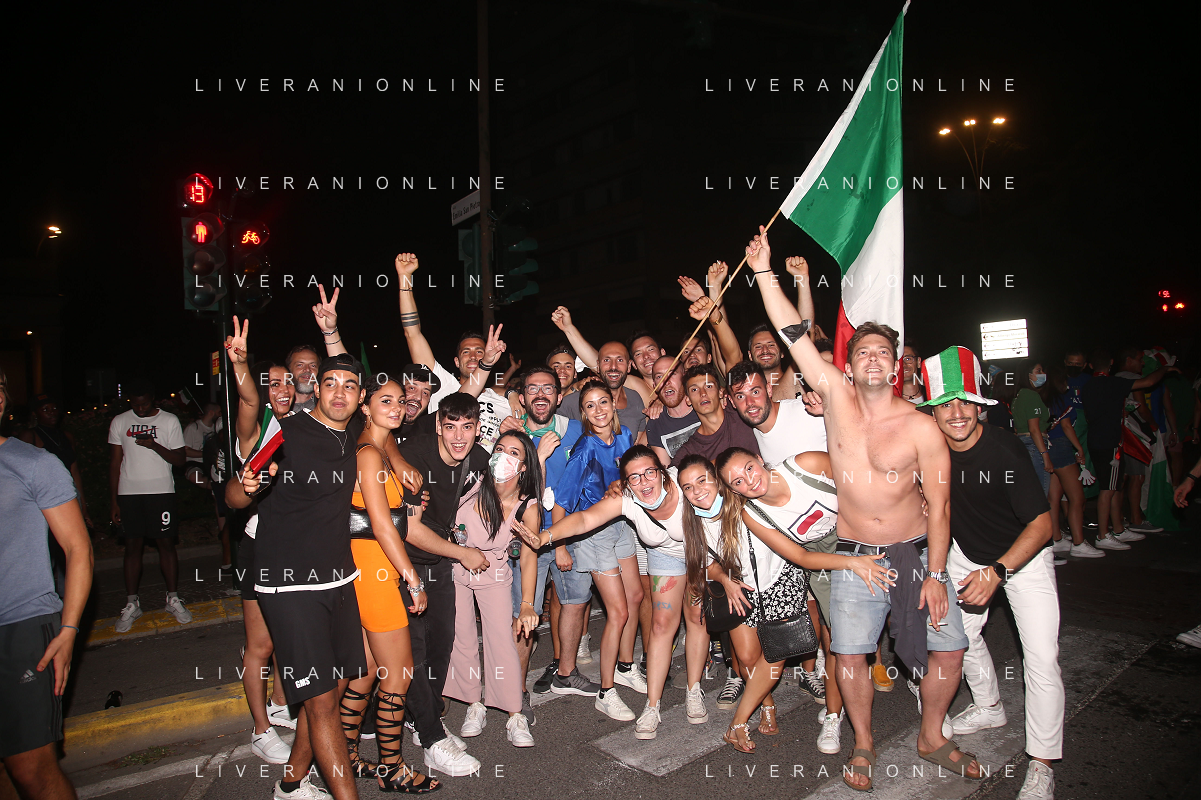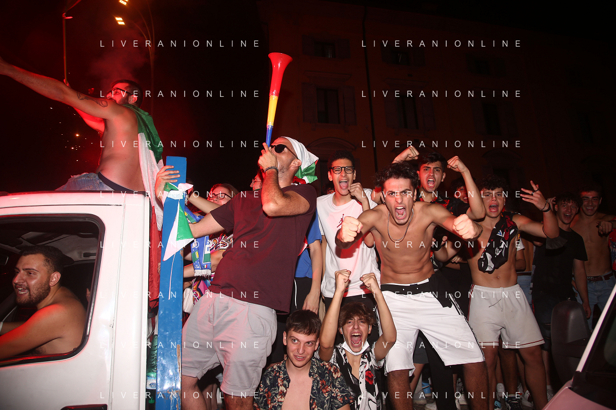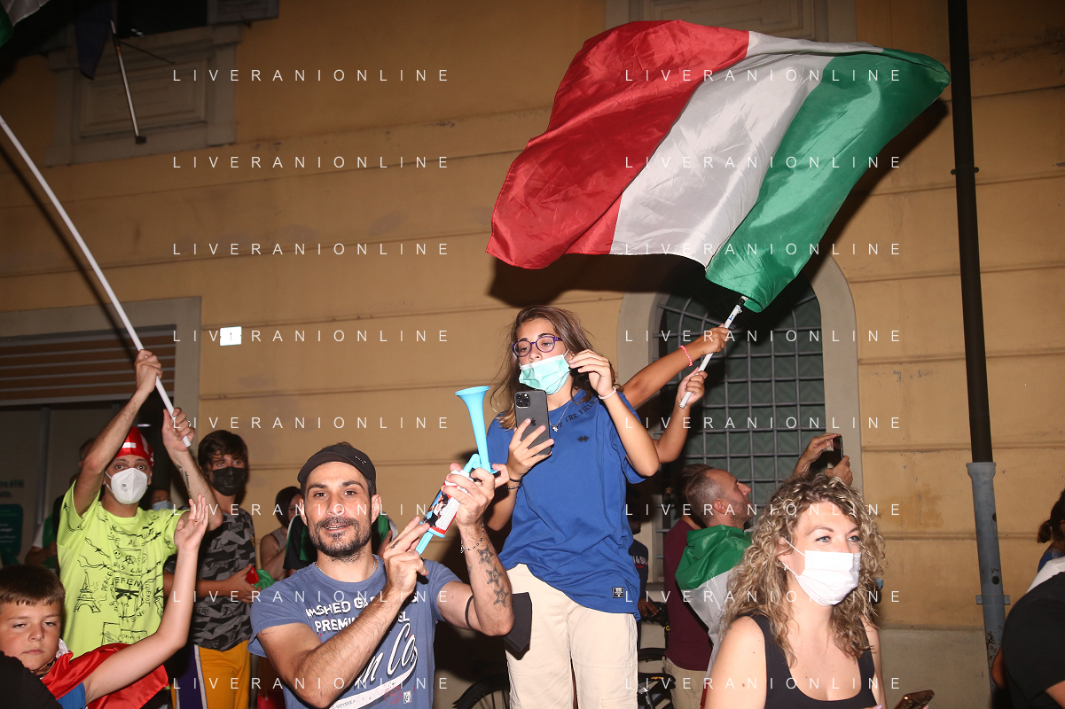 Esultanza e Festeggiamenti dei tifosi dell'Italia dopo la vittoria nella finale contro l'Inghilterra agli Europei di Calcio 2020 - Reggio Emilia 12.07.2021