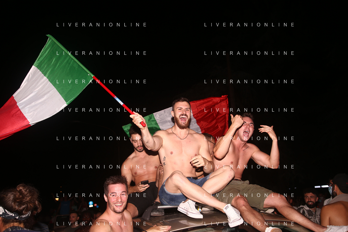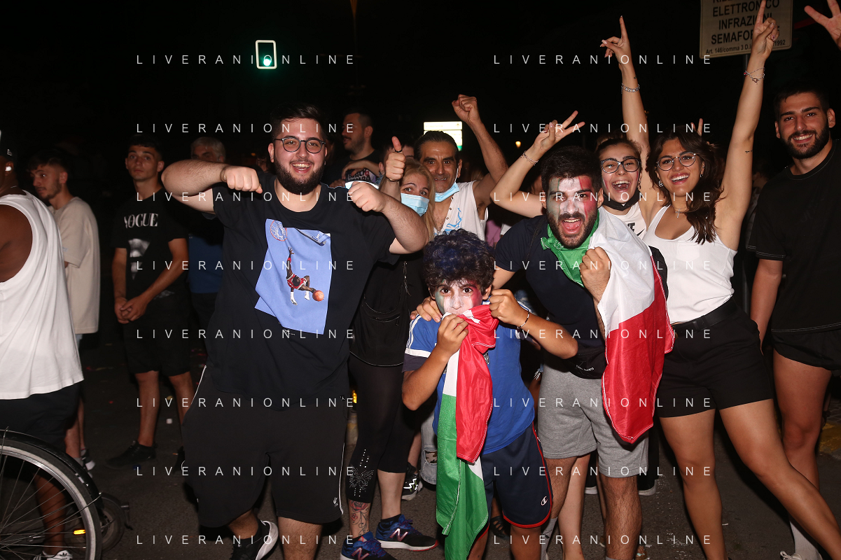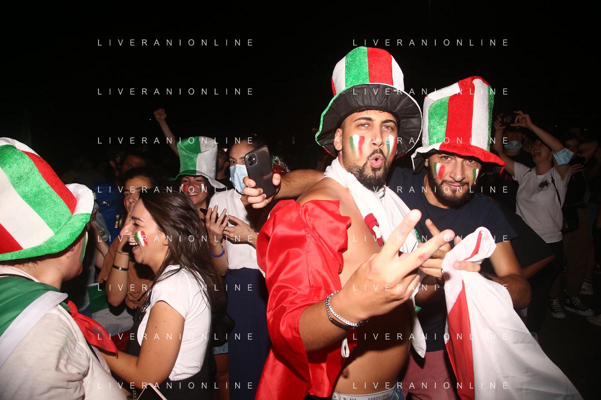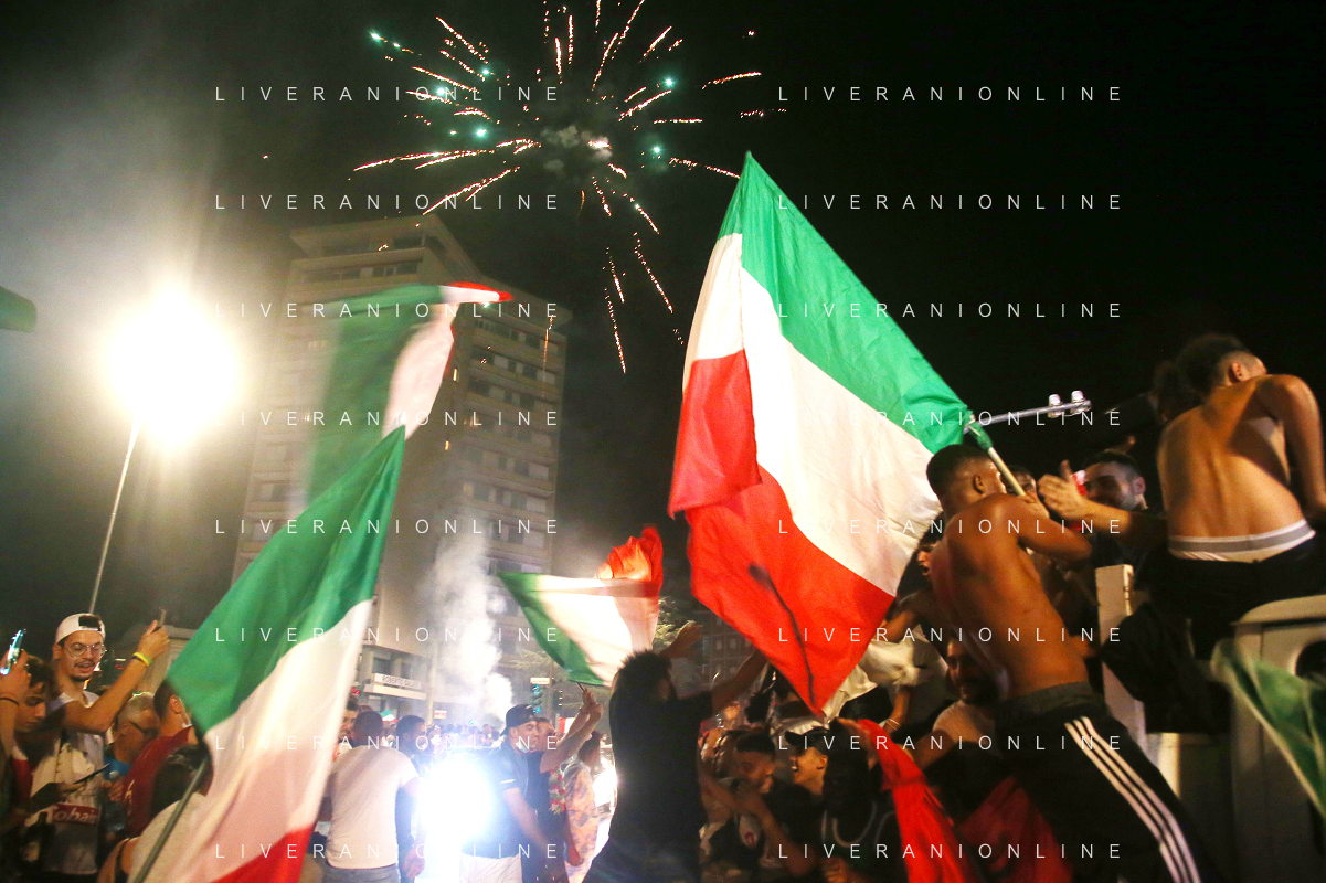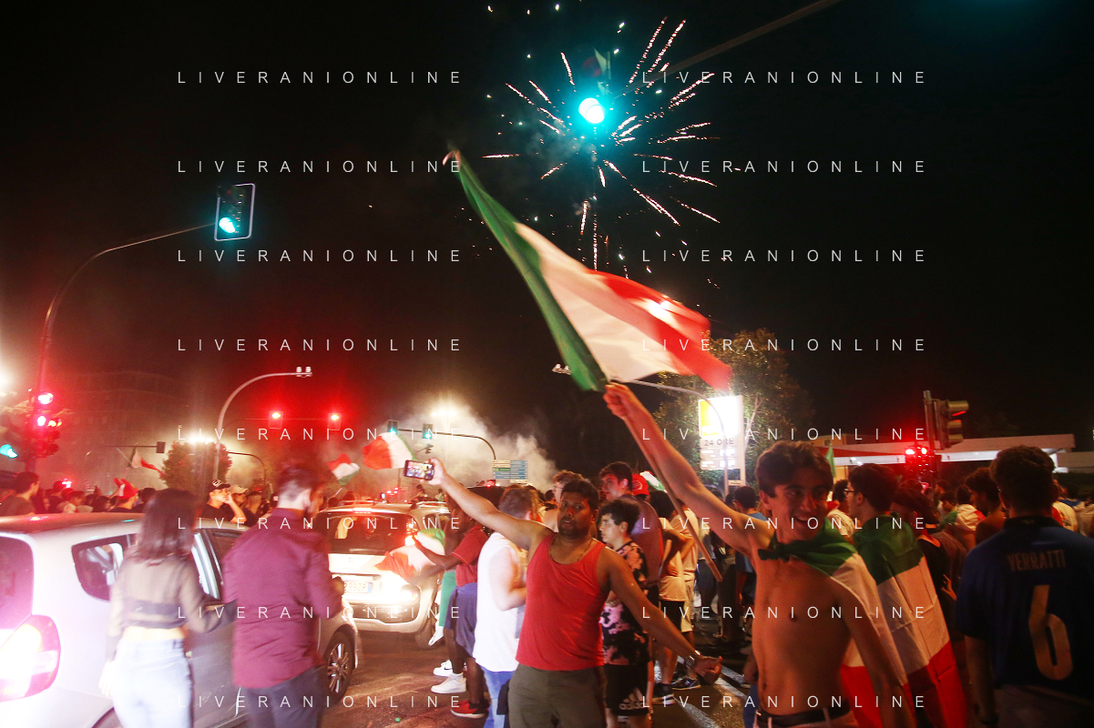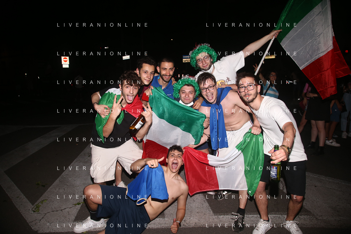 Esultanza e Festeggiamenti dei tifosi dell'Italia dopo la vittoria nella finale contro l'Inghilterra agli Europei di Calcio 2020 - Reggio Emilia 12.07.2021