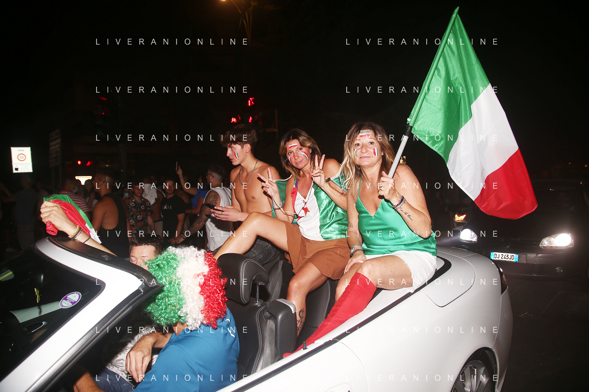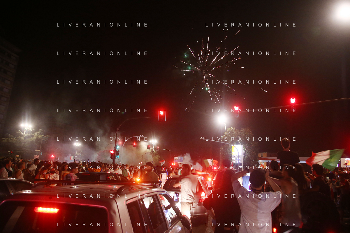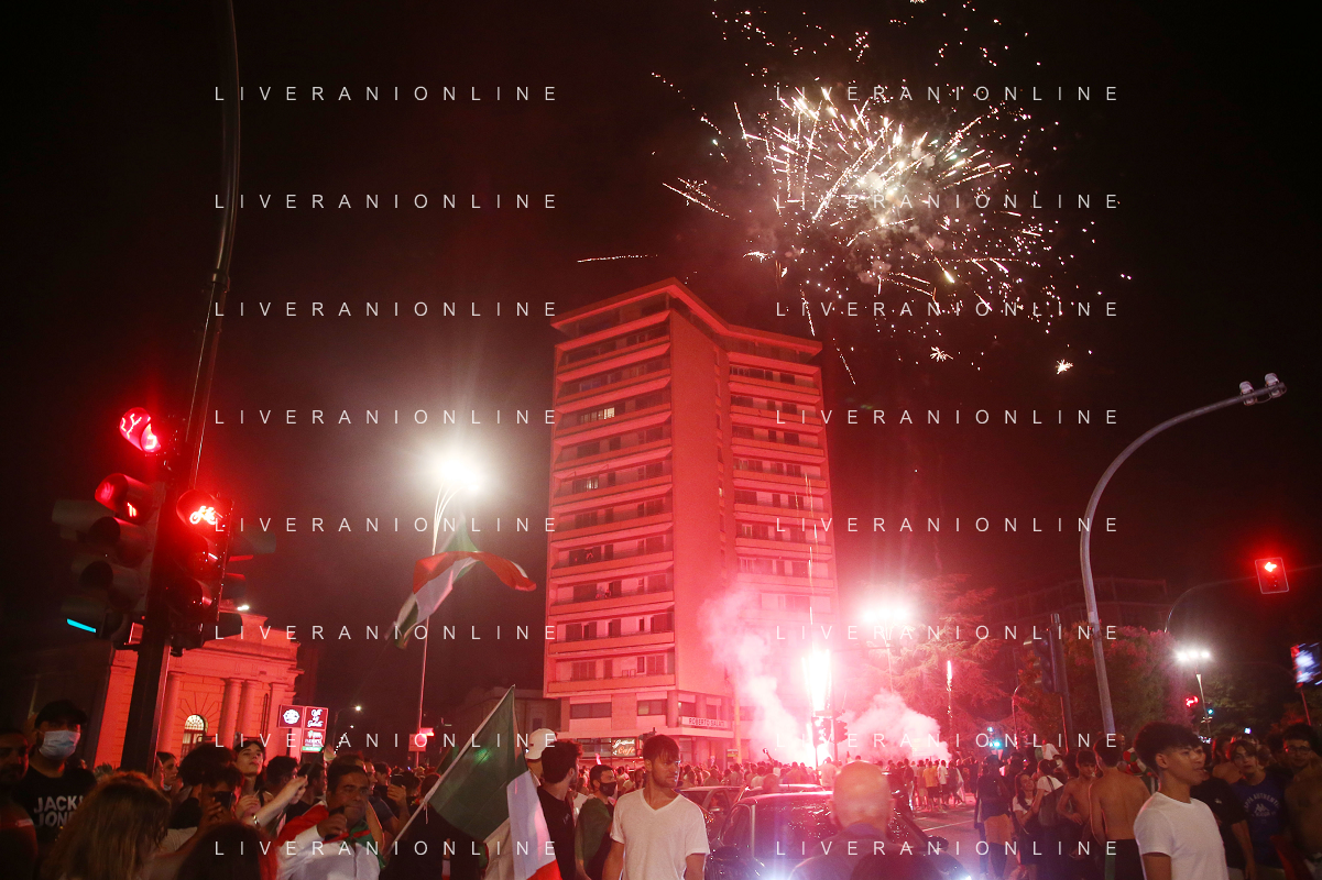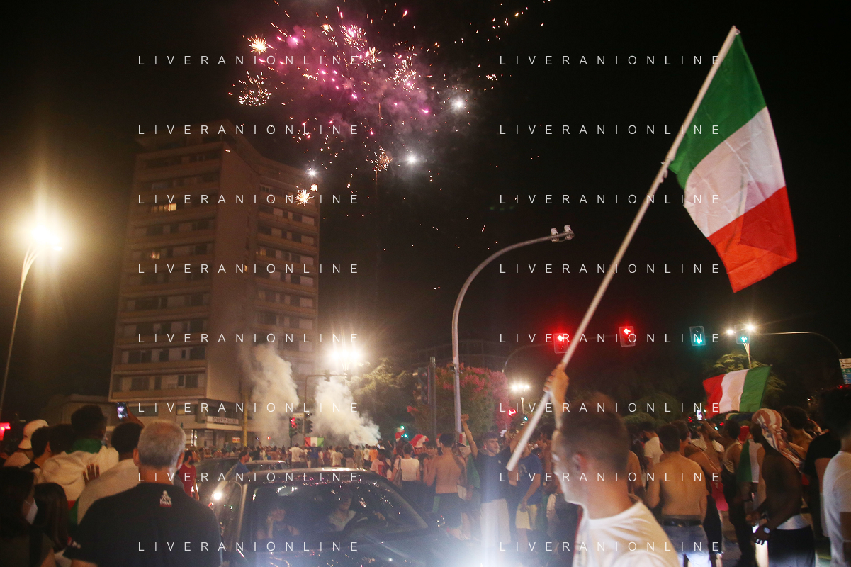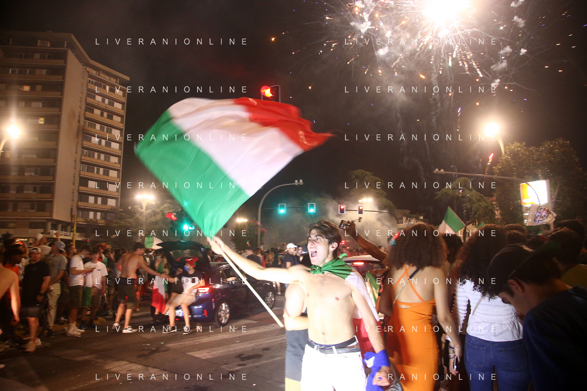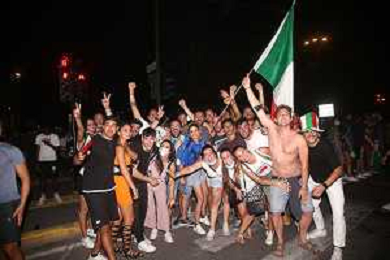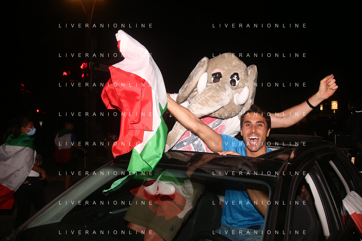 Esultanza e Festeggiamenti dei tifosi dell'Italia dopo la vittoria nella finale contro l'Inghilterra agli Europei di Calcio 2020 - Reggio Emilia 12.07.2021
