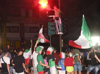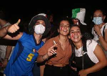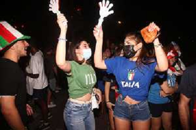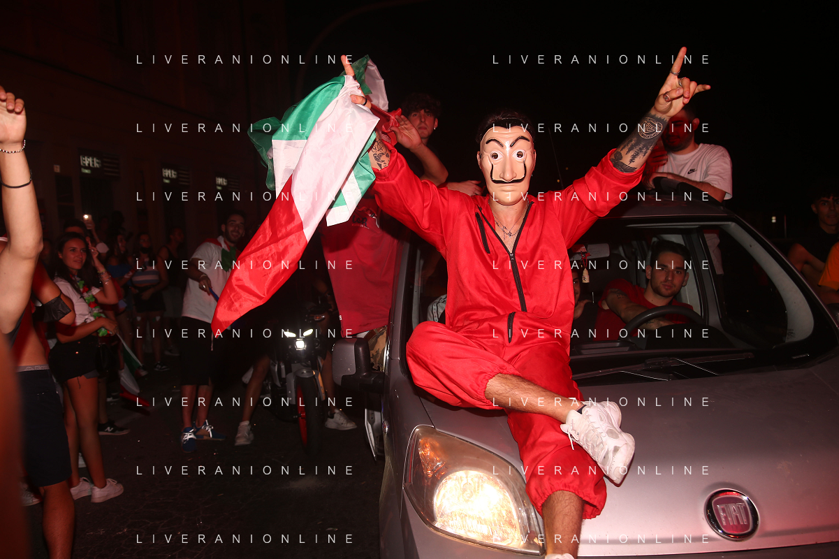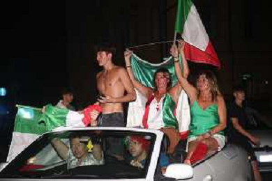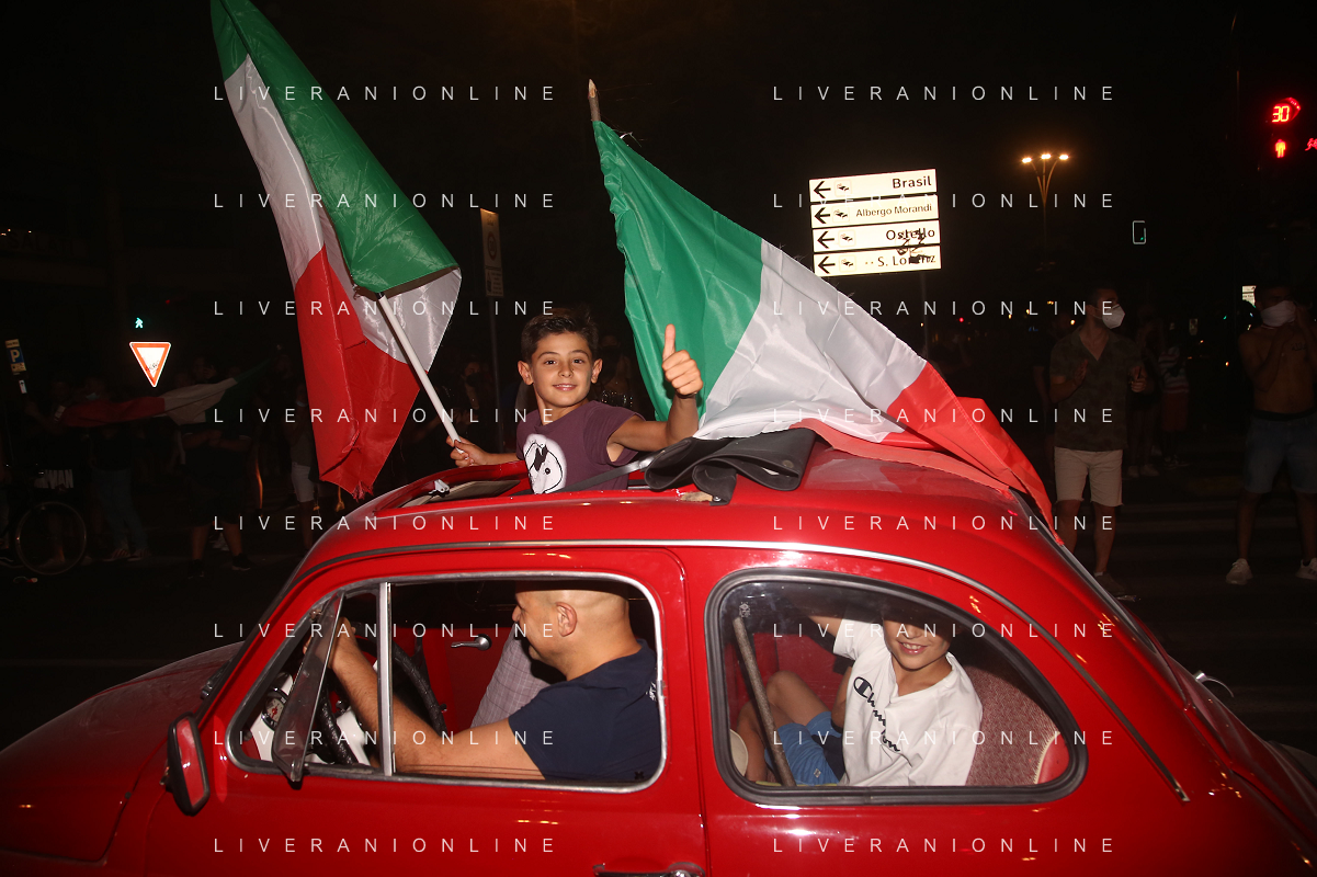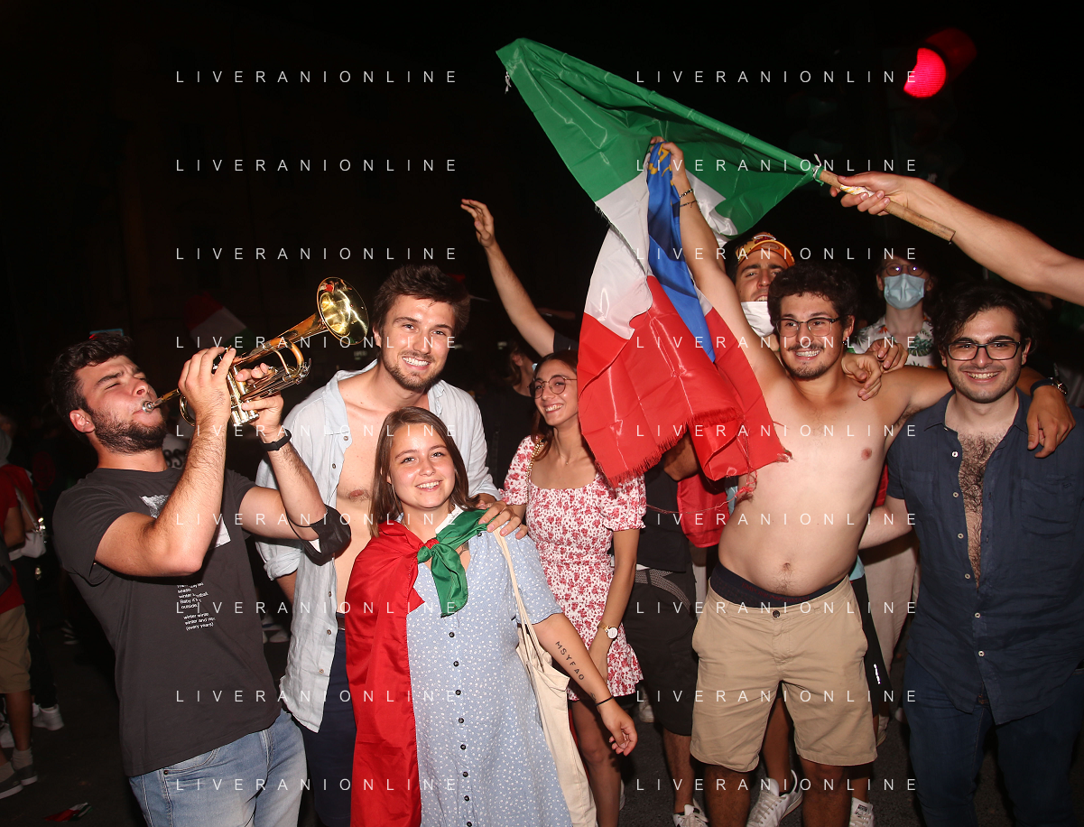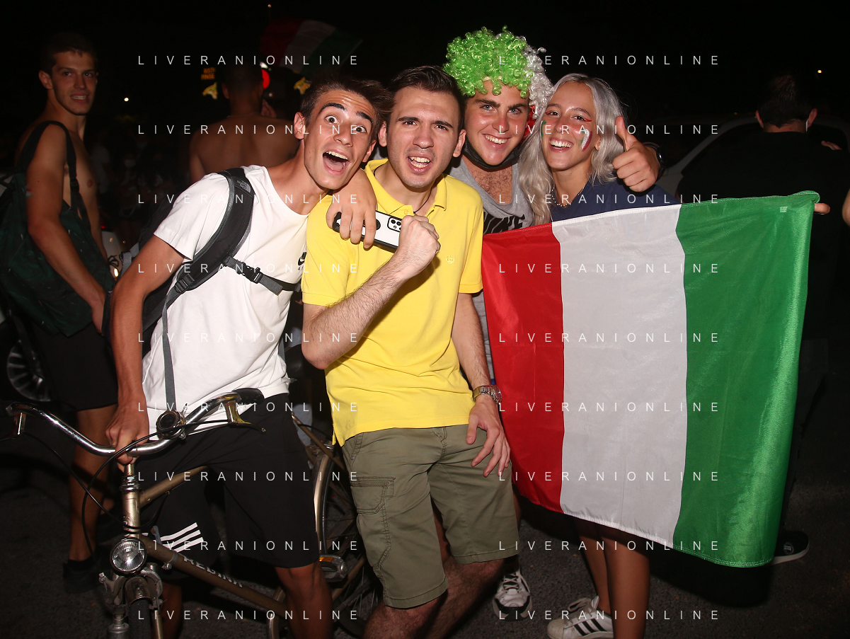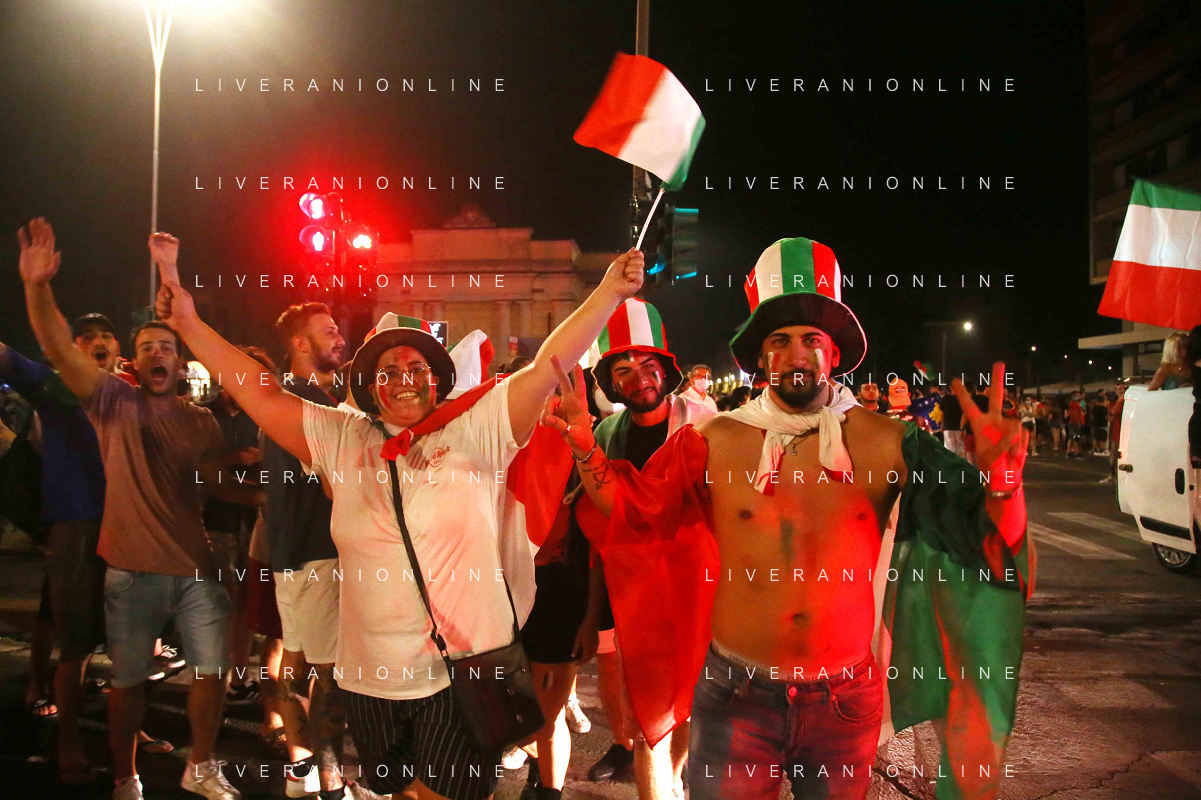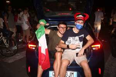 Esultanza e Festeggiamenti dei tifosi dell'Italia dopo la vittoria nella finale contro l'Inghilterra agli Europei di Calcio 2020 - Reggio Emilia 12.07.2021