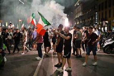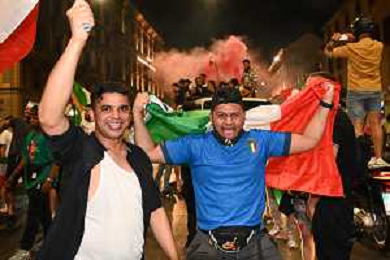 -TVGR - Esultanza e Festeggiamenti dei tifosi dell'Italia dopo la vittoria nella finale contro l'Inghilterra agli Europei di Calcio 2020 - MILANO 12.07.2021