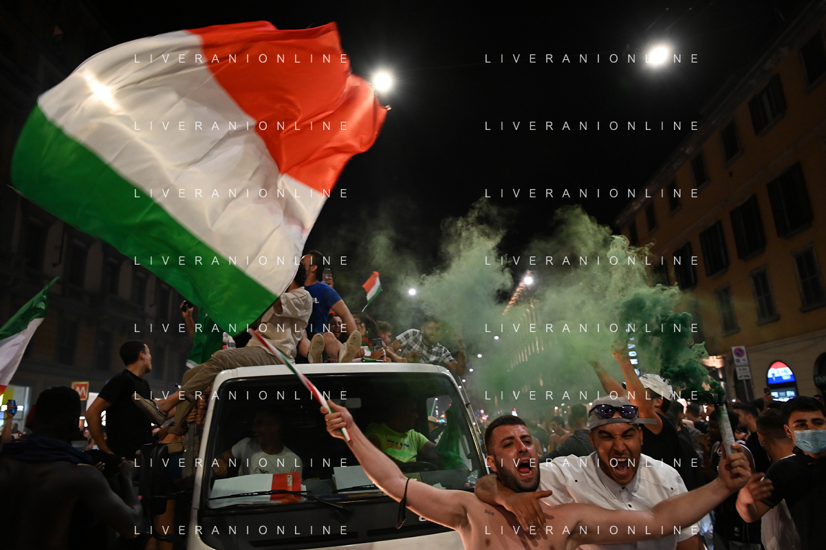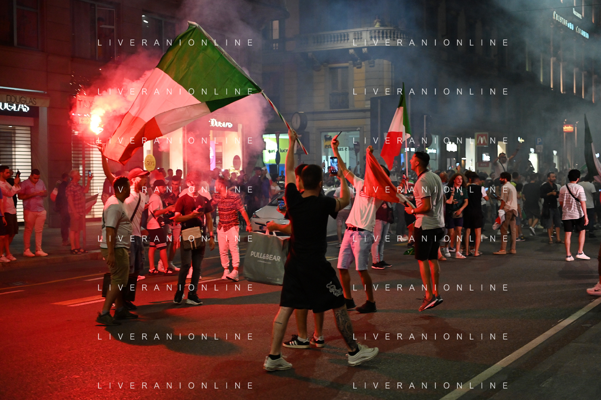 Esultanza e Festeggiamenti dei tifosi dell'Italia dopo la vittoria nella finale contro l'Inghilterra agli Europei di Calcio 2020 - MILANO 12.07.2021 - 14 file