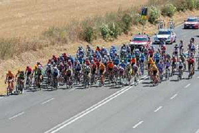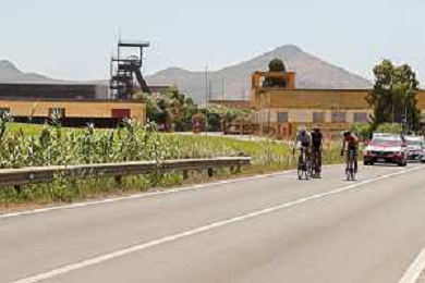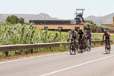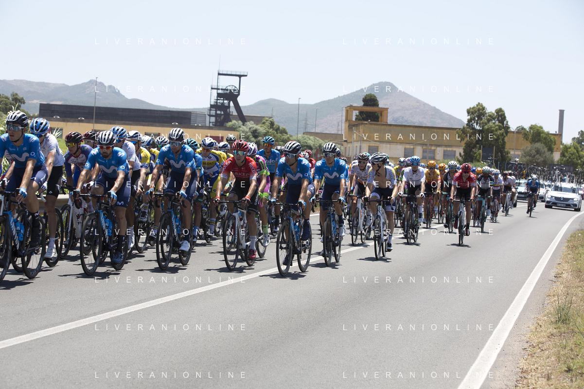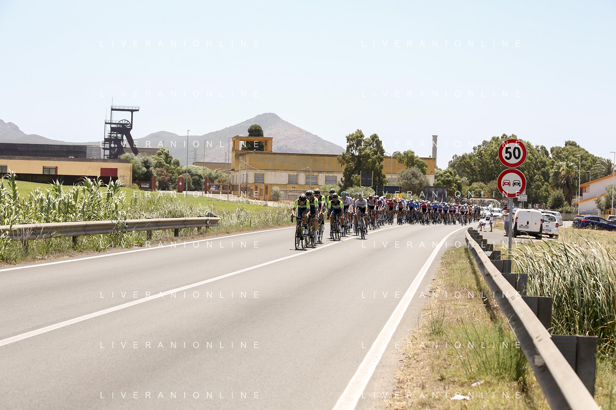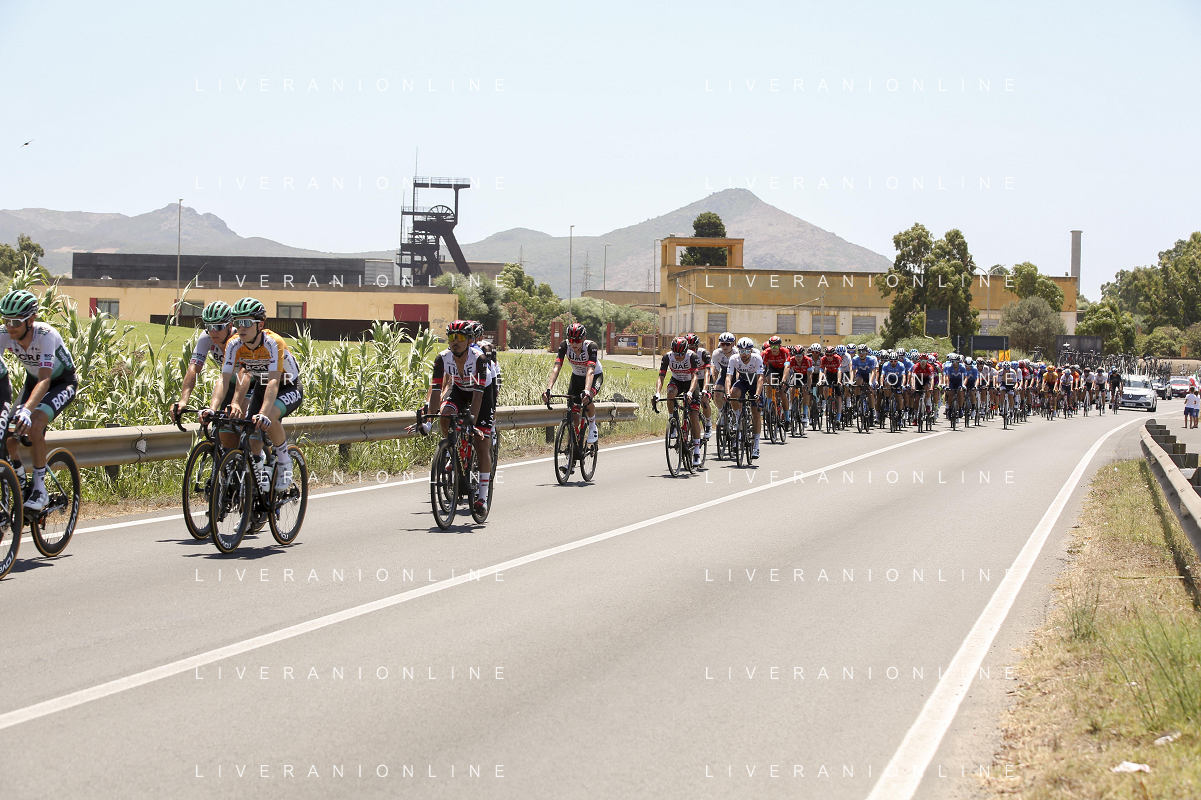 18-7-2021. Settimana Ciclistica Italiana sulle strade della Sardegna. Gara internazionale di ciclismo. Quinta tappa, Cagliari, Sardegna, Italia. Salvatore Moi/Aldo Liverani s.a.s. Nella foto: ciclisti in uscita da Carbonia sulla strada statle SP2 Pedemontana.