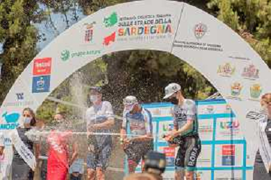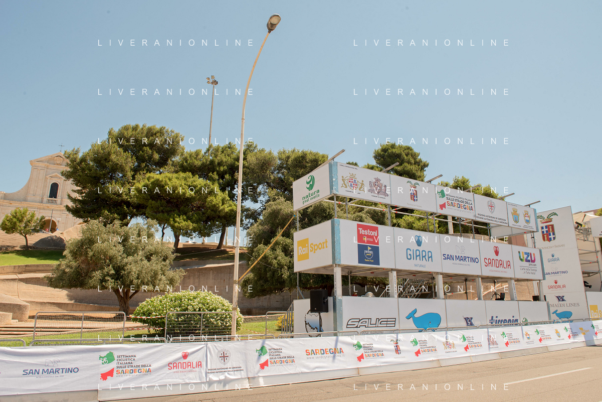18-7-2021. Settimana Ciclistica Italiana sulle strade della Sardegna. Gara internazionale di ciclismo. Quinta tappa, Cagliari, Sardegna, Italia. Salvatore Moi/Aldo Liverani s.a.s. Nella foto: Arrivo 5° tappa, Viale Armando Diaz, Cagliari, con podio premiazioni.