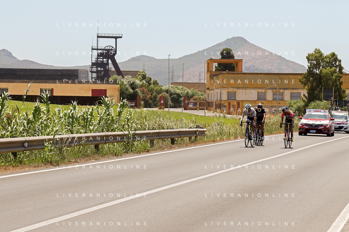 18-7-2021. Settimana Ciclistica Italiana sulle strade della Sardegna. Gara internazionale di ciclismo. Quinta tappa, Cagliari, Sardegna, Italia. Salvatore Moi/Aldo Liverani s.a.s. Nella foto: da sinistra a desta: Sep Vanmarke (Israele), Diego Ulissi (Italia), Giovanni Aleotti (Italia).