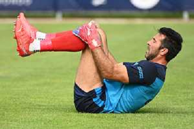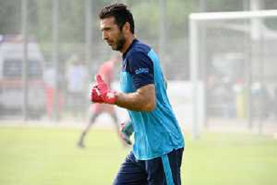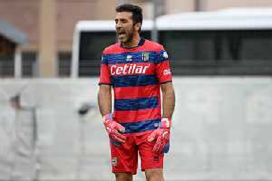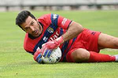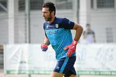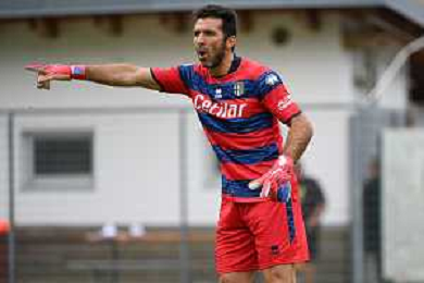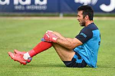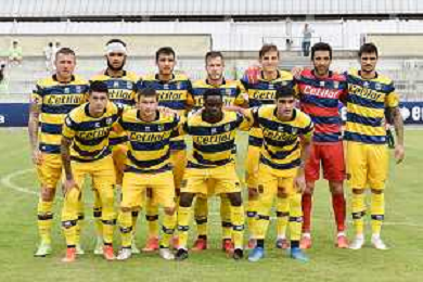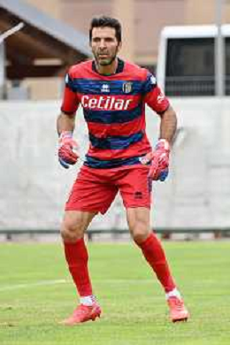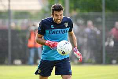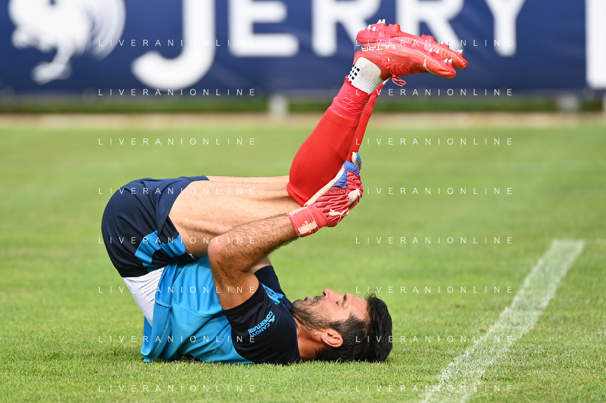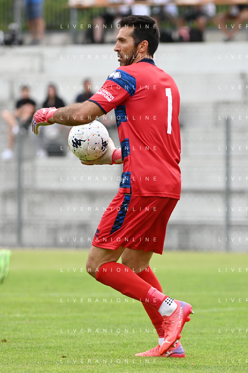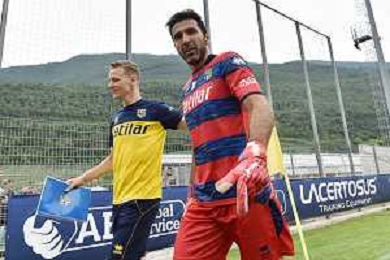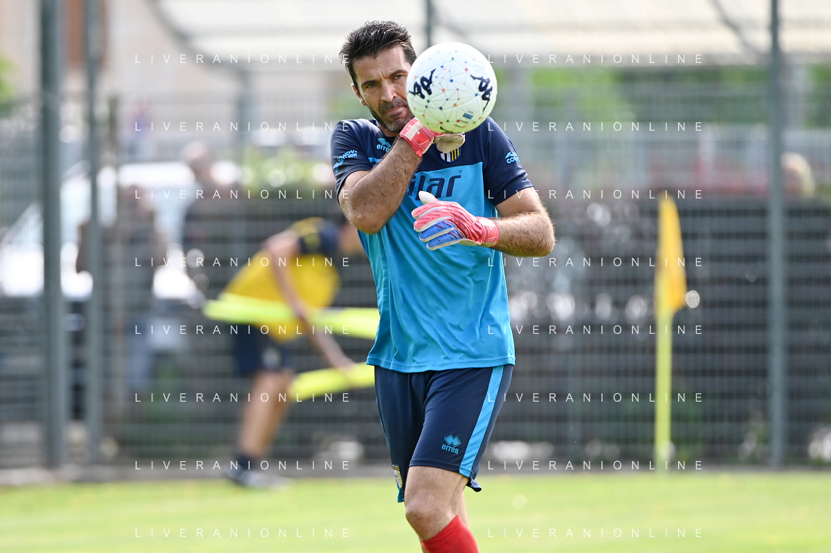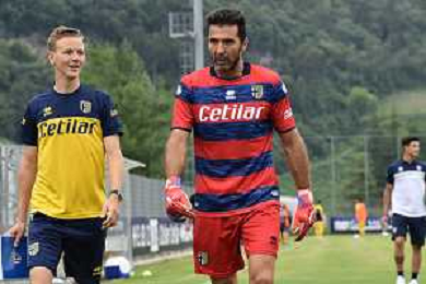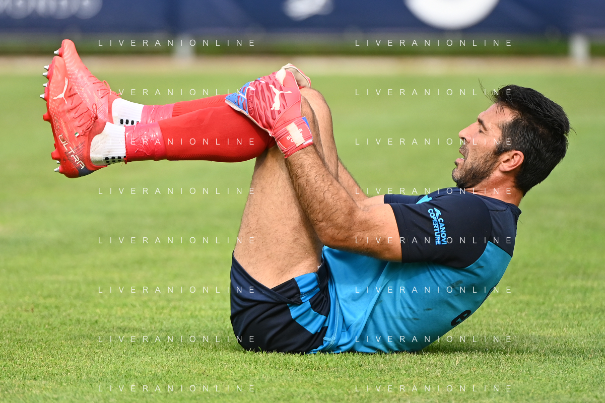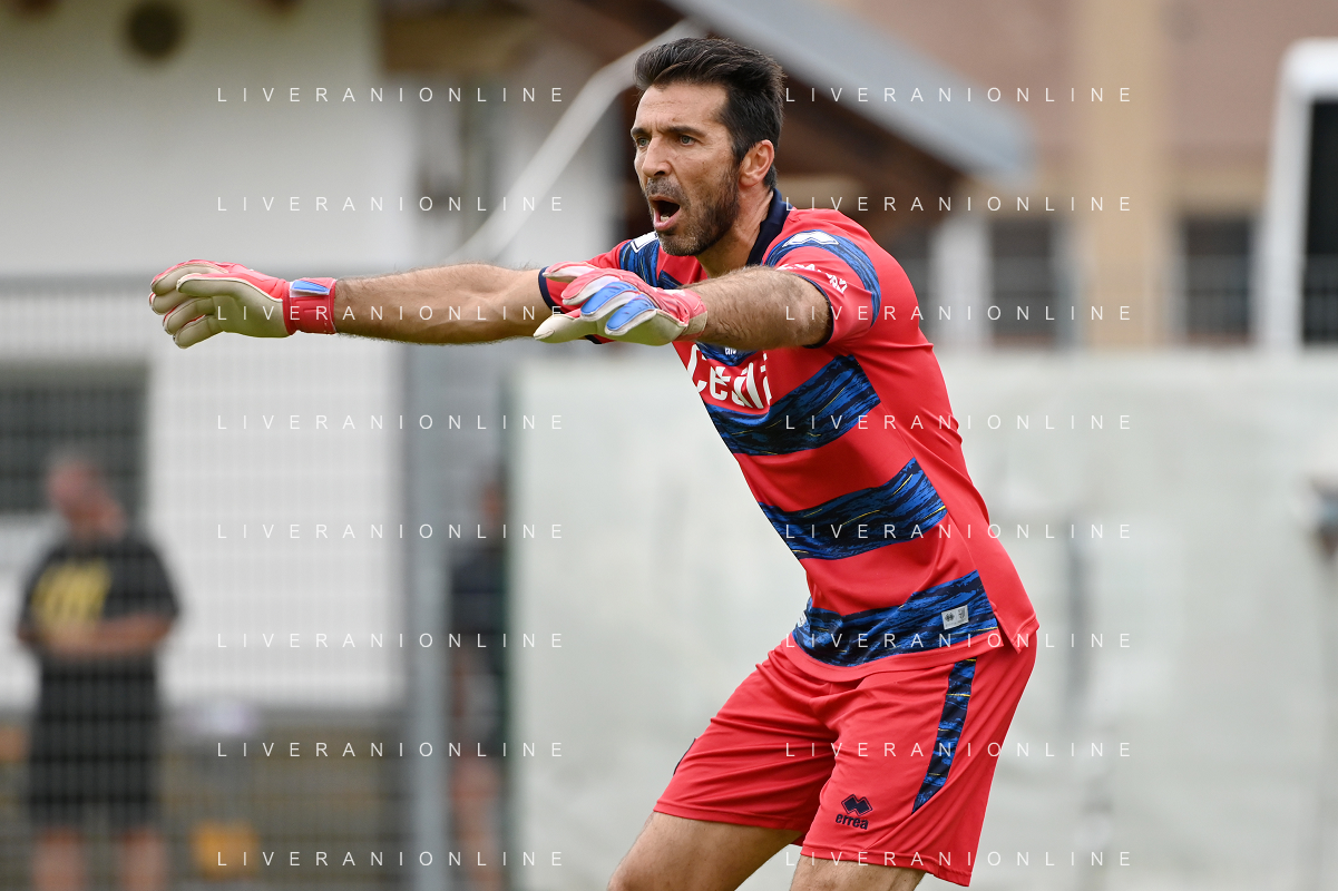 la formazione del Parma da SX Juraj Kucka, Simon Sohm, Botond Balogh, Riccardo Gagliolo, Adrian Benedyczak, Gianluigi Buffon e Stanko Juric; in basso da SX Lautaro Valenti, Daniele Iacoponni, Drissa Camara e Juan Francisco Brunetta Parma vs Trento amichevole precampionato San Michele all'Adige 24-07-2021 foto Roberto Garavaglia/ag. Aldo Liverani sas