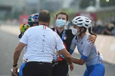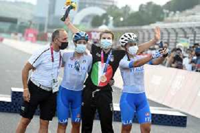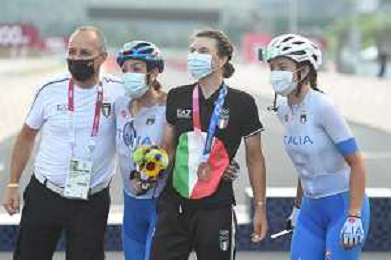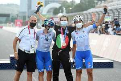 25-07-2021 Giochi Olimpici Elite Donne; 2021, Italia; Longo Borghini, Elisa; Paladin, Soraya; Dagnoni, Cordiano; Fuji Speedway; ©SIROTTI/AGENZIA ALDO LIVERANI SAS