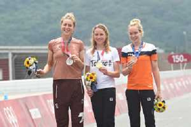 28-07-2021 Giochi Olimpici Cronometro Elite Donne; 2021, Olanda; 2021, Svizzera; Van Vleuten, Annemiek; Van Der Breggen, Anna; Reusser, Marlen; Fuji Speedway; - Ciclismo Olimpiadi Tokyo 2020 Giappone ©SIROTTI/AGENZIA ALDO LIVERANI SAS