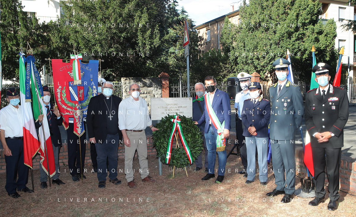 IMOLA 02 08 2021 COMMEMORAZIONE VITTIME STRAGE DI BOLOGNA NELLA FOTO GRUPO CON SINDACO MARCO PANIERI VESCOVO GIOVANNI MOSCIATTI FOTO GIANNI SANNA-AG ALDO LIVERANI SAS