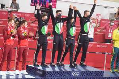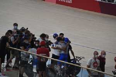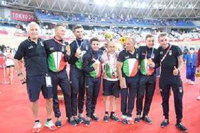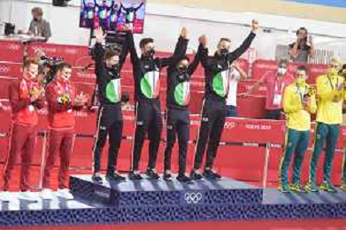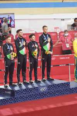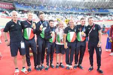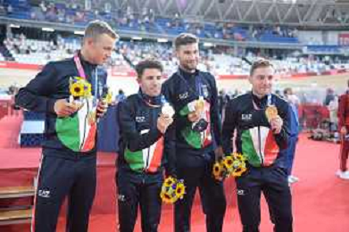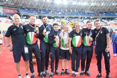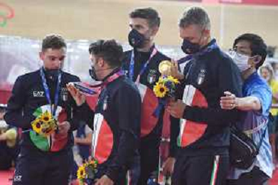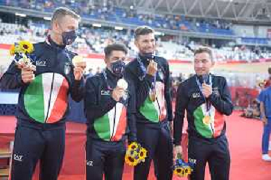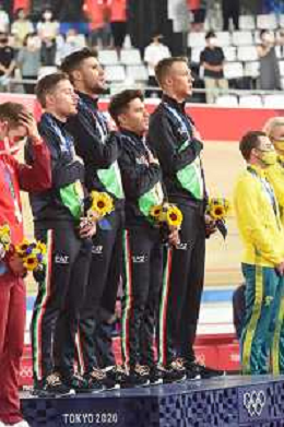 04-08-2021 Giochi Olimpici Pista Uomini; Giornata 03; 2021, Italia; Viviani, Elia; Malago, Giovanni; Villa, Marco; Dagnoni, Cordiano; Izu; ©SIROTTI/AGENZIA ALDO LIVERANI SAS