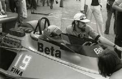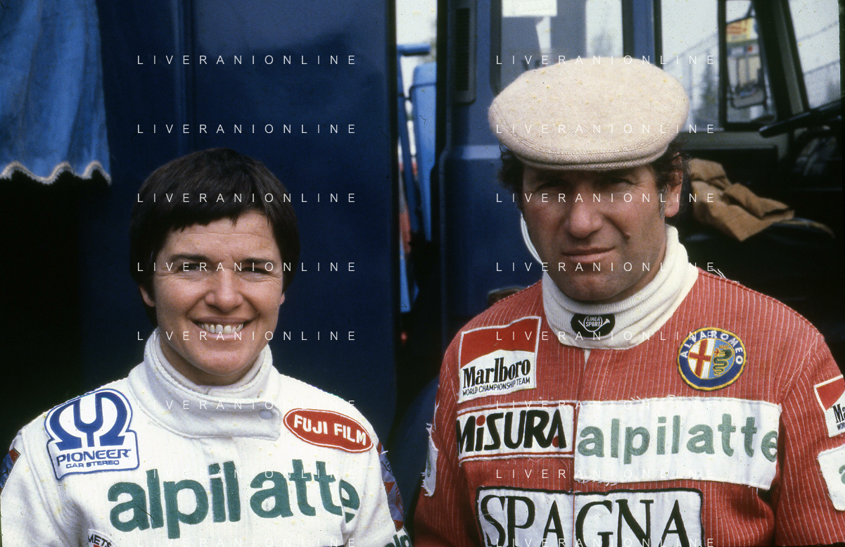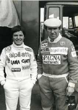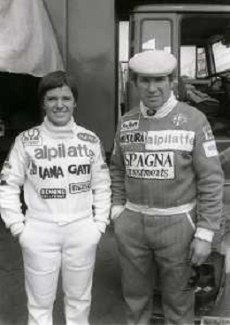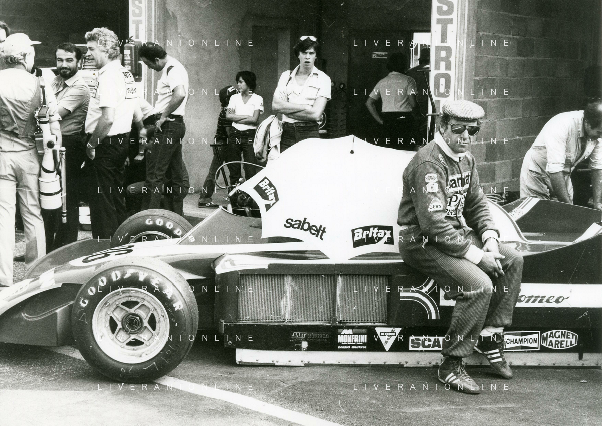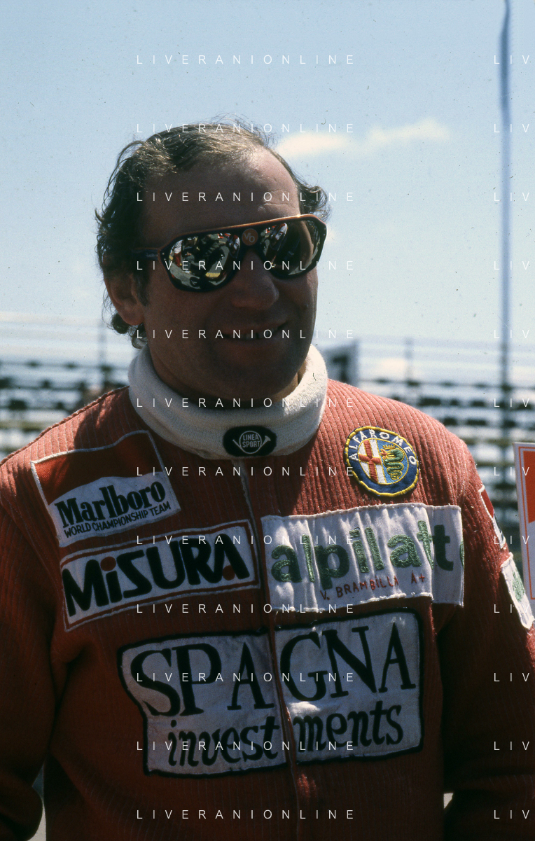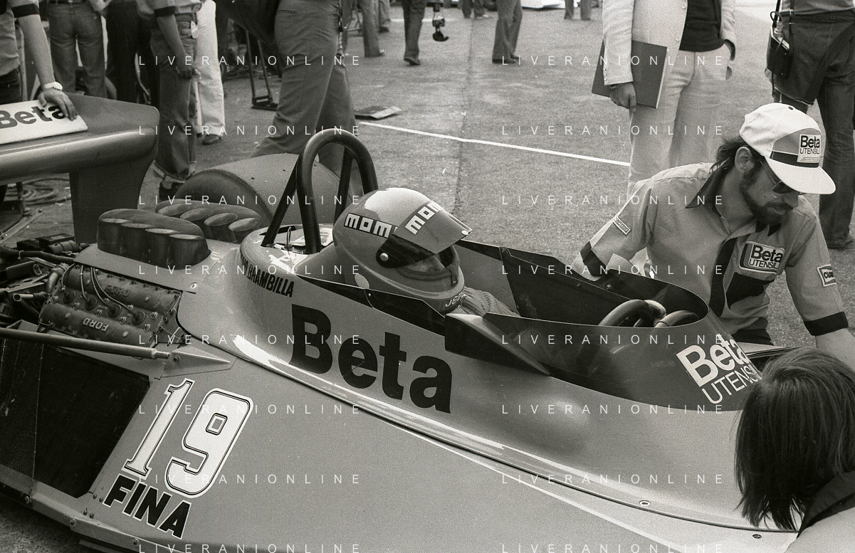 RETROSPETTIVA VITTORIO BRAMBILLA PILOTA NELLA FOTO VITTORIO BRAMBILLA NELL'ANNO 1980 A MONZA CON LELLA LOMBARDI AG ALDO LIVERANI SAS