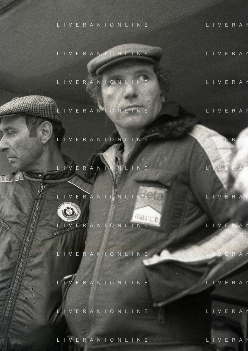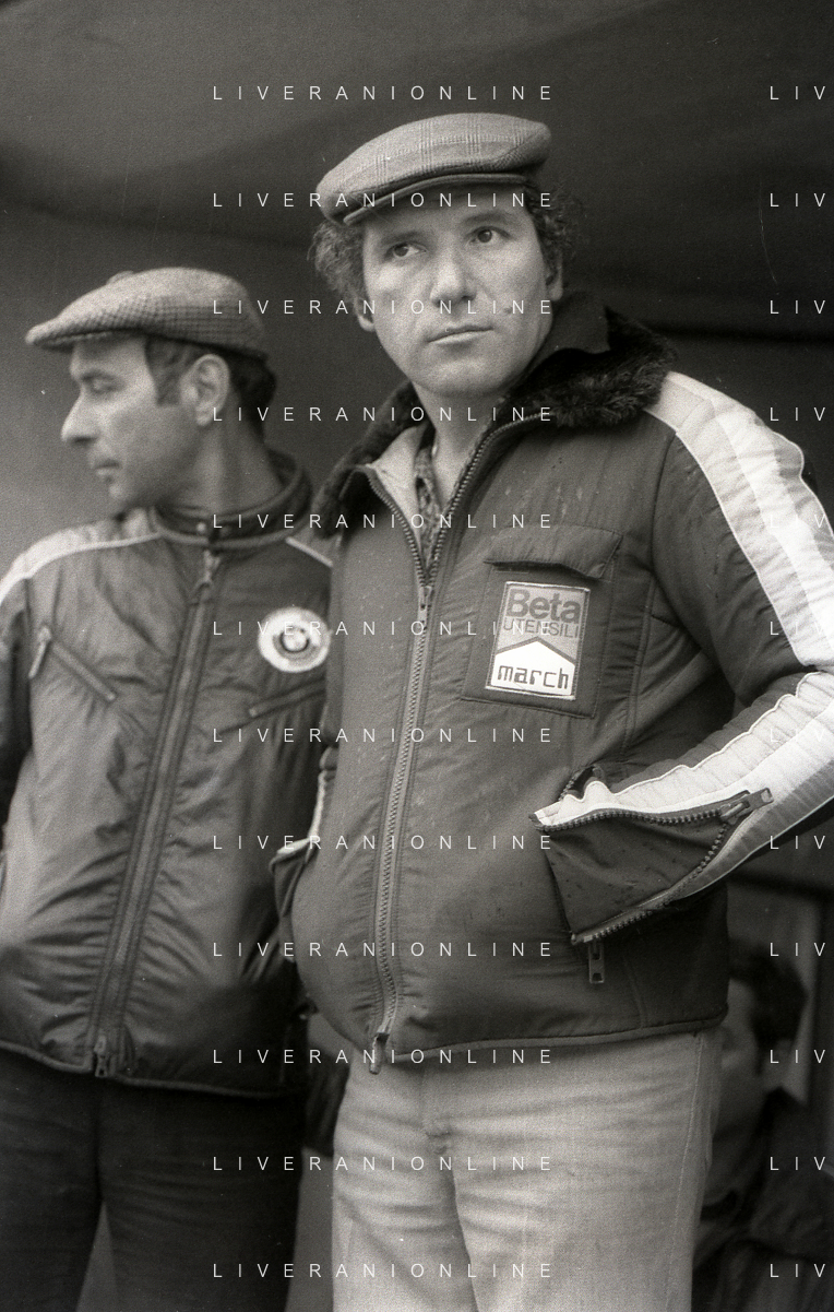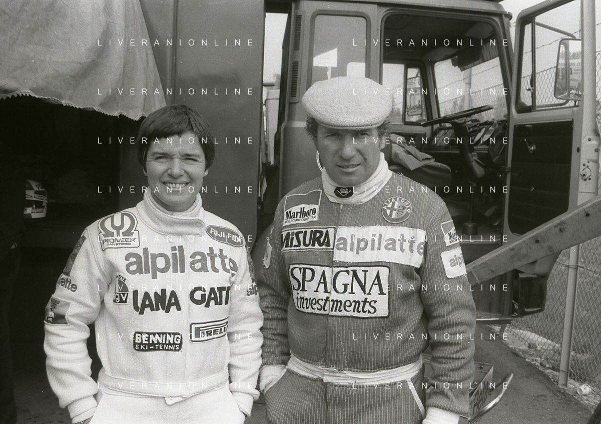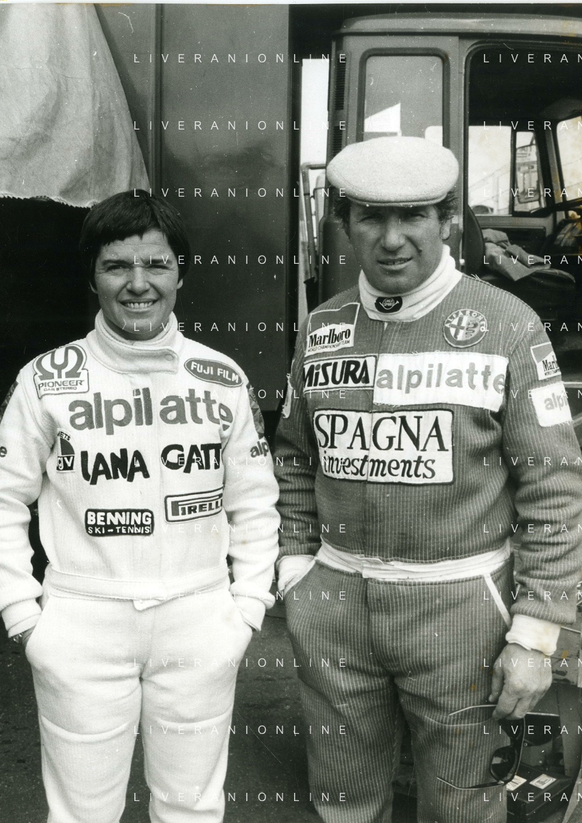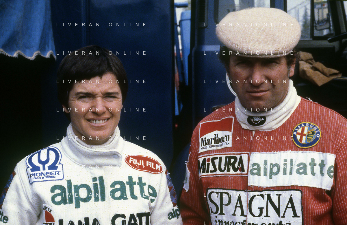 RETROSPETTIVA VITTORIO BRAMBILLA PILOTA NELLA FOTO VITTORIO BRAMBILLA NELL'ANNO 1980 A MONZA CON LELLA LOMBARDI AG ALDO LIVERANI SAS